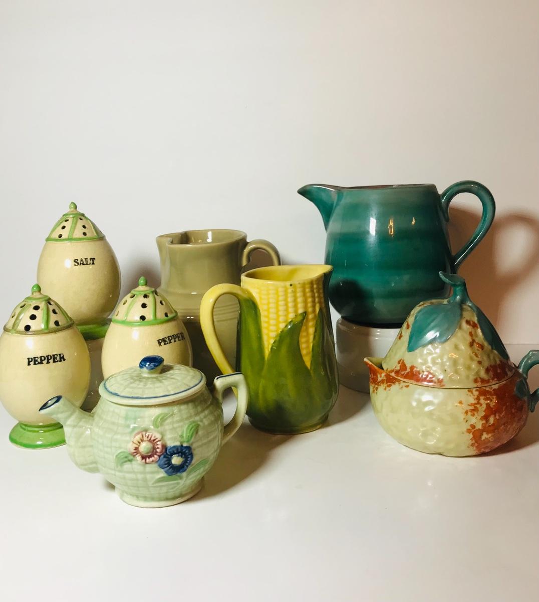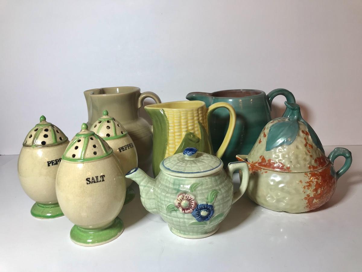 Salt and pepper shakers, tea pots made in Japan, pitchers by Shawnee, Roseville, and Stangl. Please see all pictures as they are the best representation of the items. The pictures show condition, measurements if taken, and what is included in the lot. Due to the large amount that we photograph and the time frame, we are not always able to take measurements. All items unless noted, are pre-owned and have been used. If you purchased furniture, you must bring help. We do not allow one person to carry large furniture out on their own. Bring help, tools and a truck for the safety of our client’s homes, and your personal safety. Company policy. Thank you.