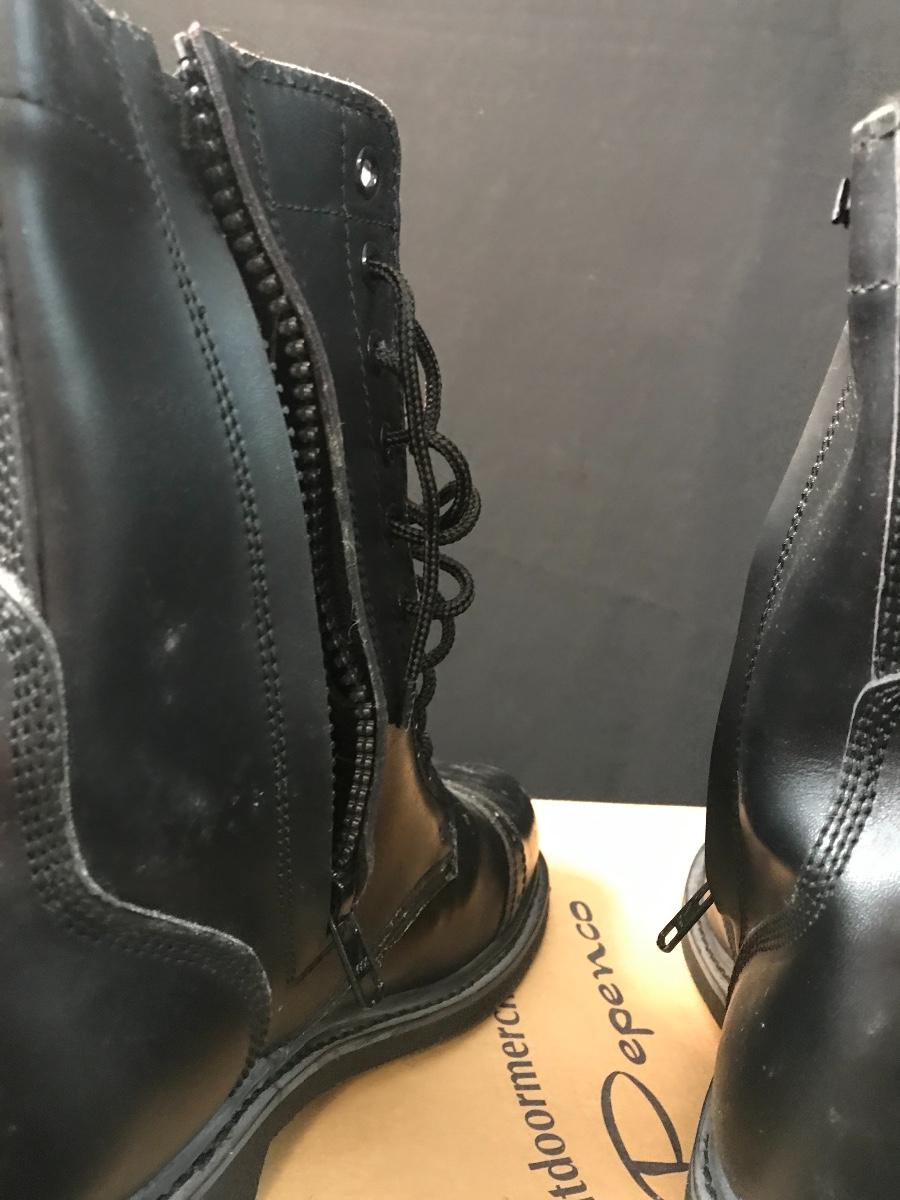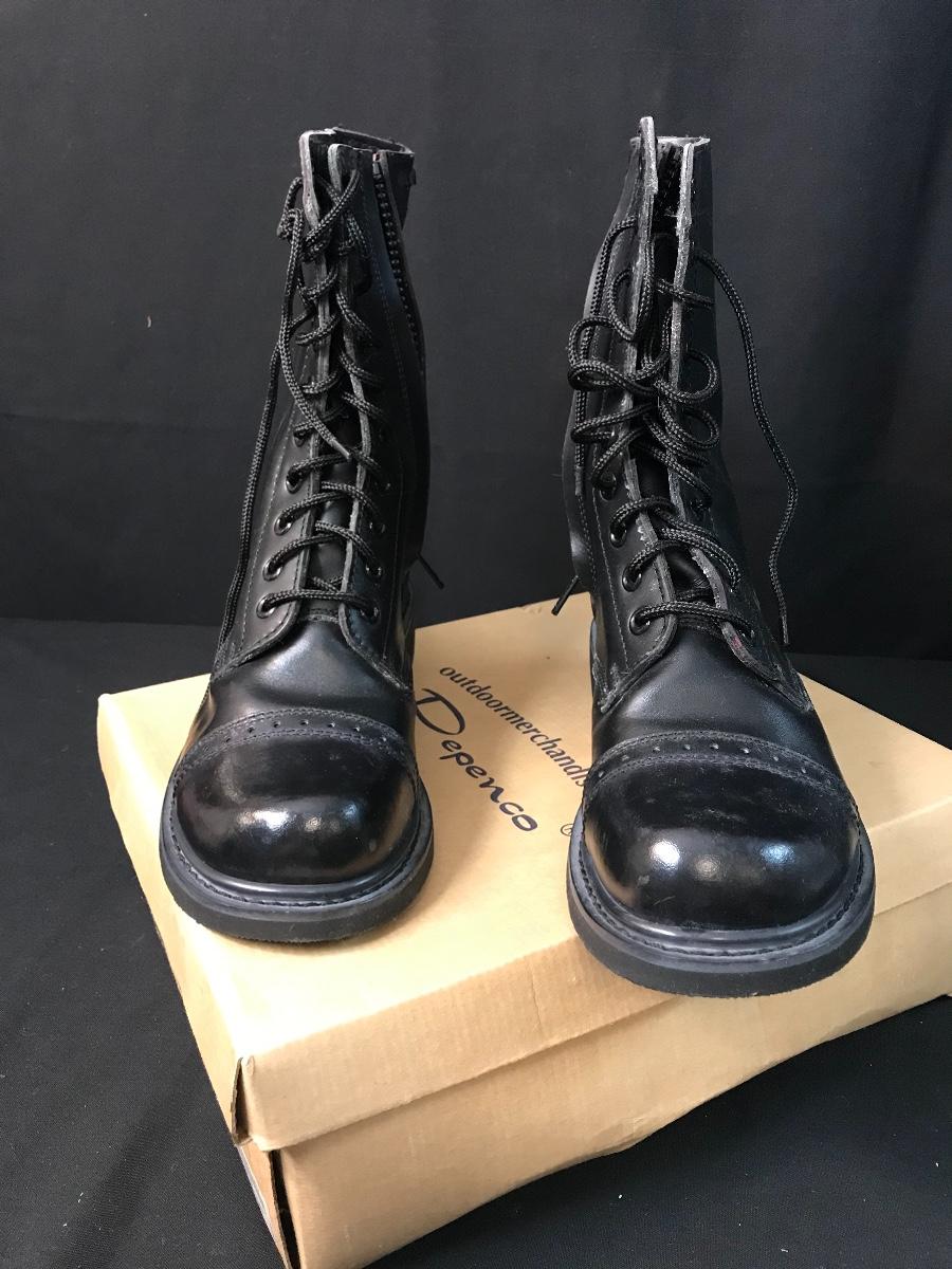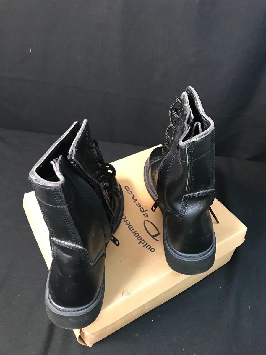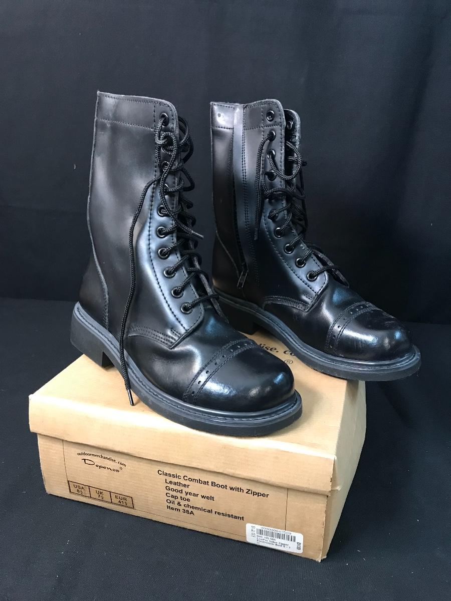 Black Combat Boots With Zipper Size 8.5. New in box. Box shows shelf wear. Please see all pictures as they are the best representation of the items. The pictures show condition, measurements if taken, and what is included in the lot. Due to the large amount that we photograph and the time frame, we are not always able to take measurements. All items unless noted, are pre-owned and have been used. If you purchased furniture, you must bring help. We do not allow one person to carry large furniture out on their own. Bring help, tools and a truck for the safety of our client’s homes, and your personal safety. Company policy. Thank you.