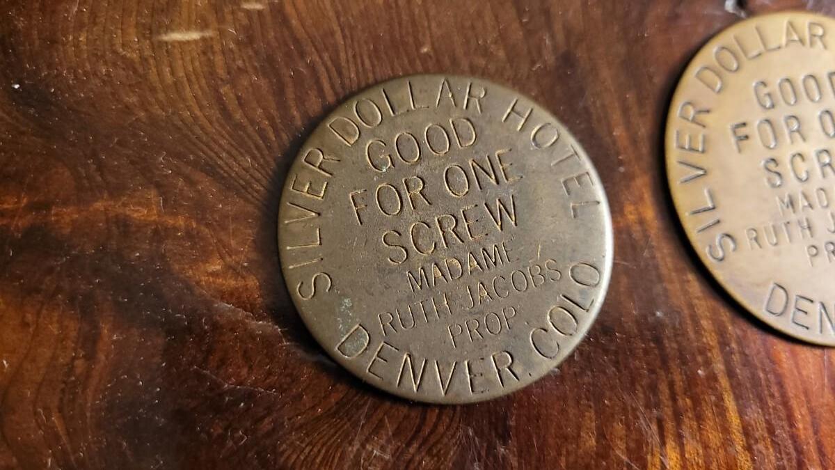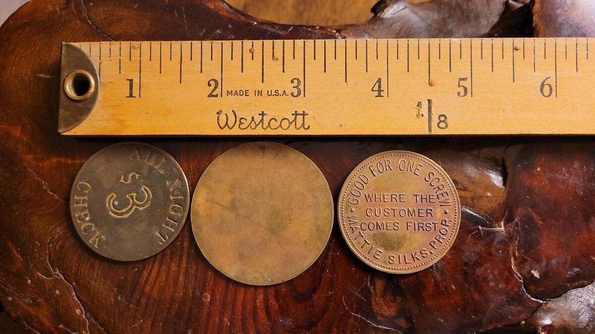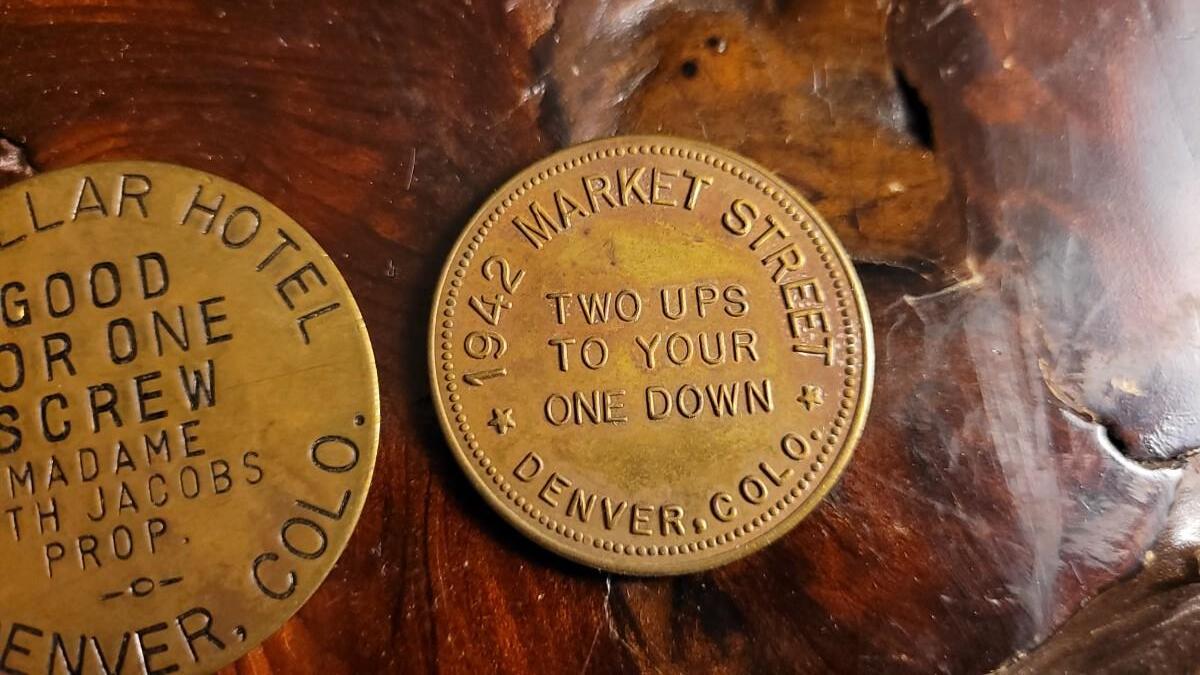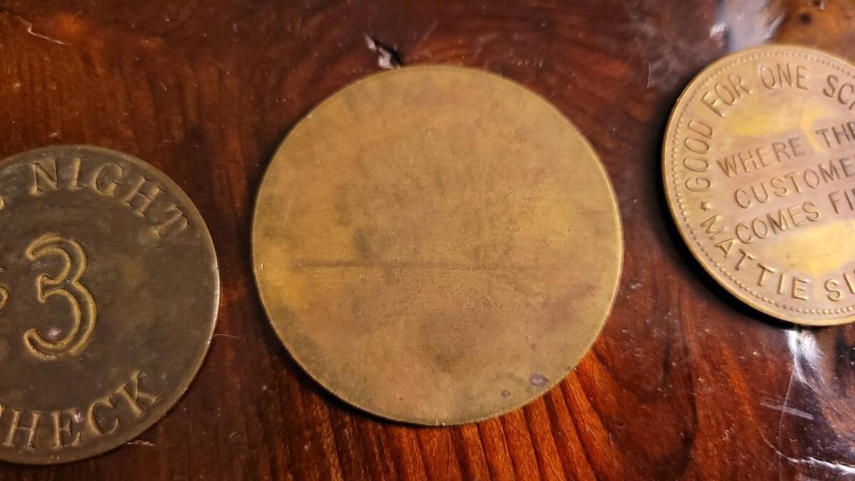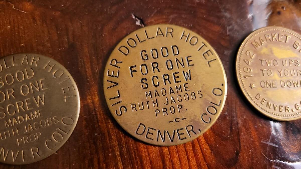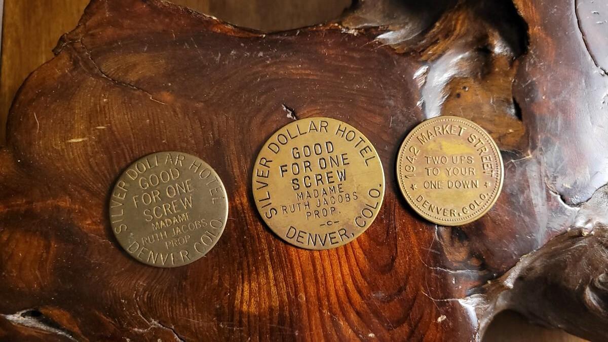 Set of (3) Antique Tokens from Assorted Denver Colorado Madames offering "Lady of the Night" Services requiring Tokens for proof of purchase.