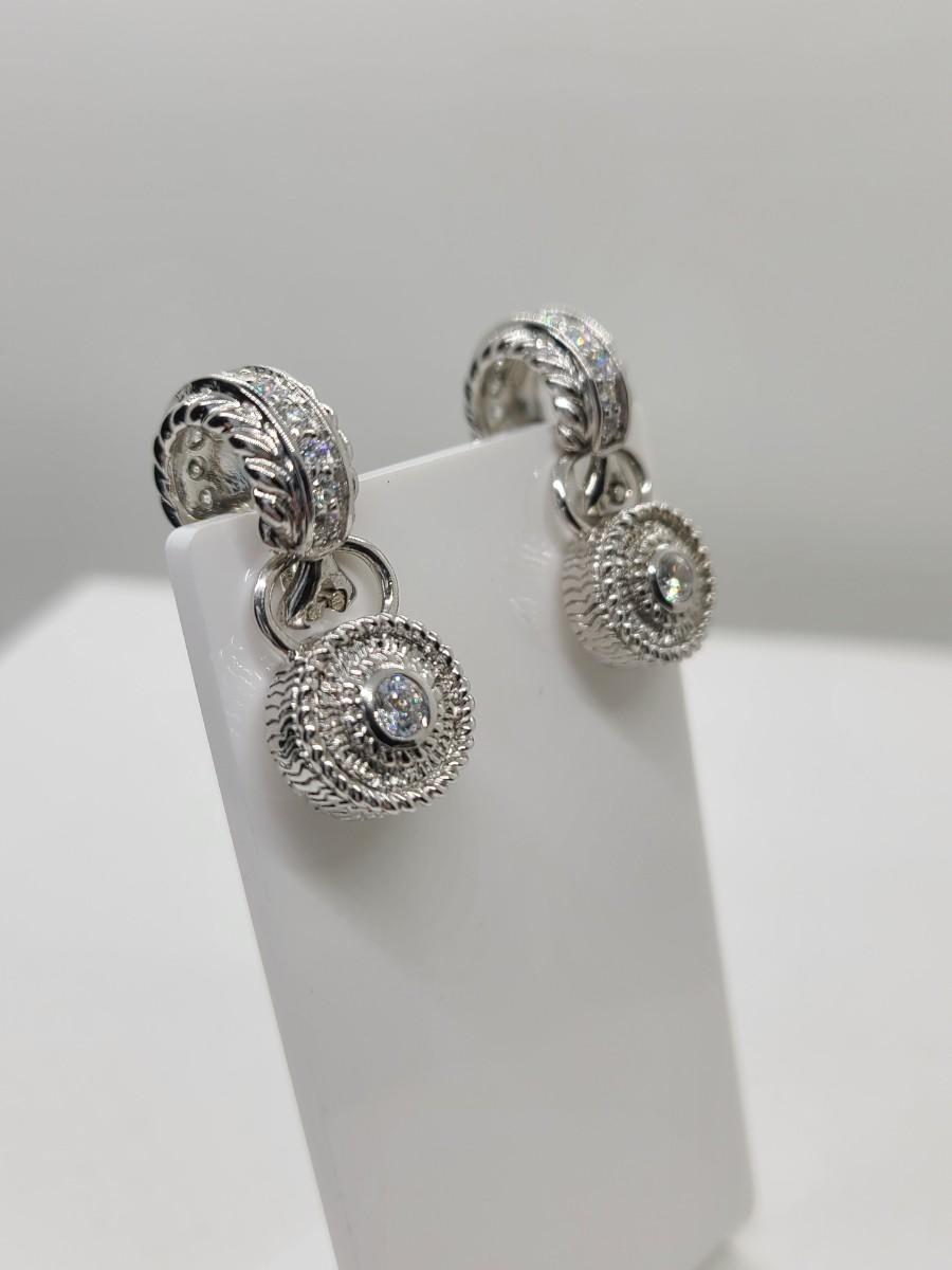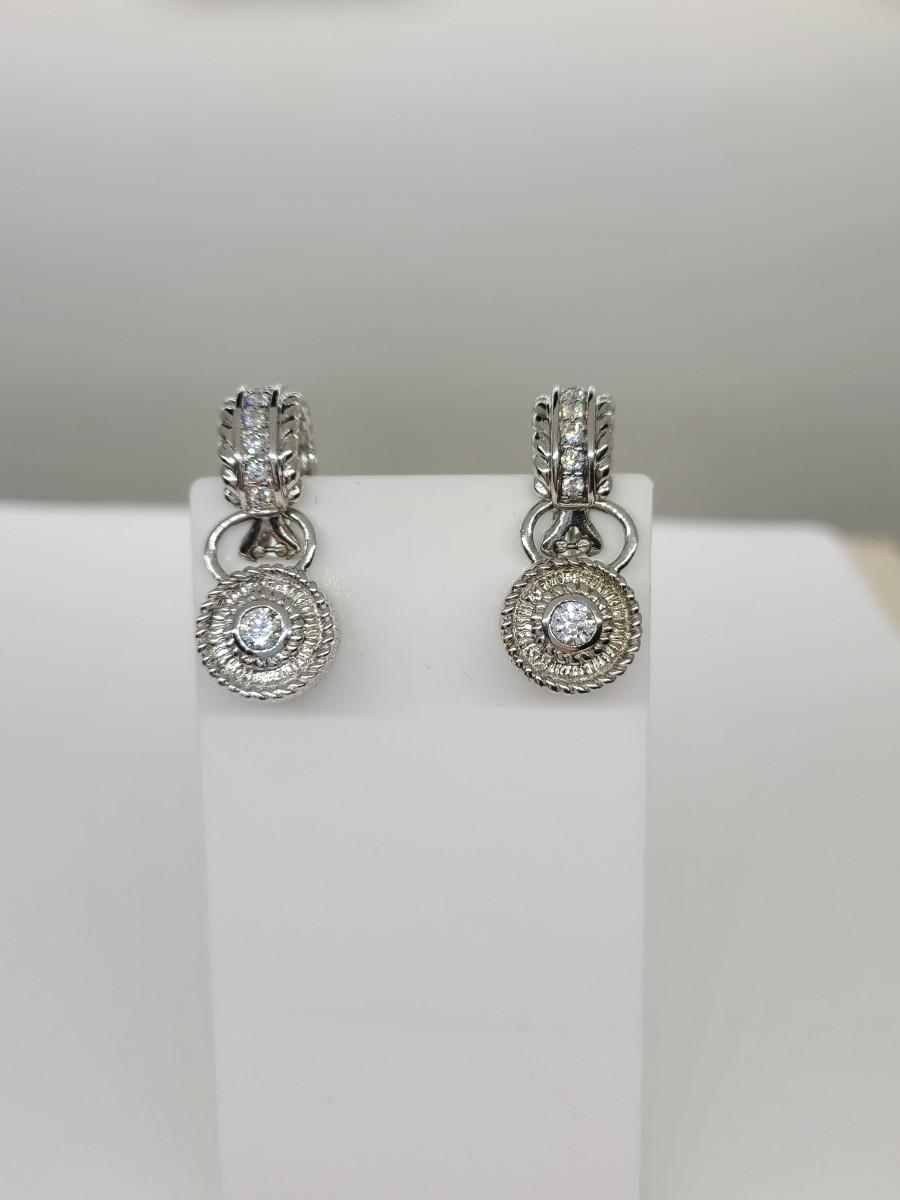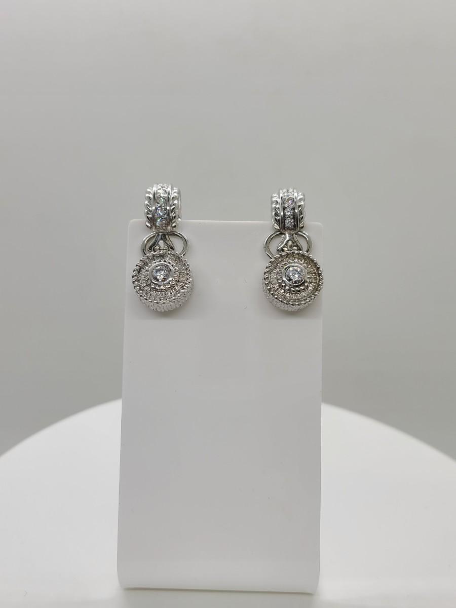 Lot 33: Judith Ripka NEW Sterling Silver Pierced Earrings with Dangle Charms