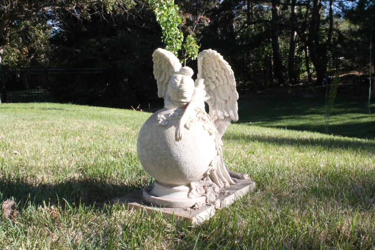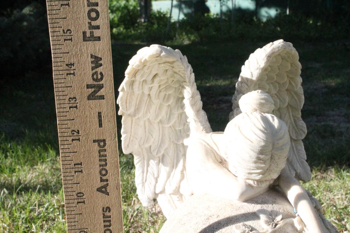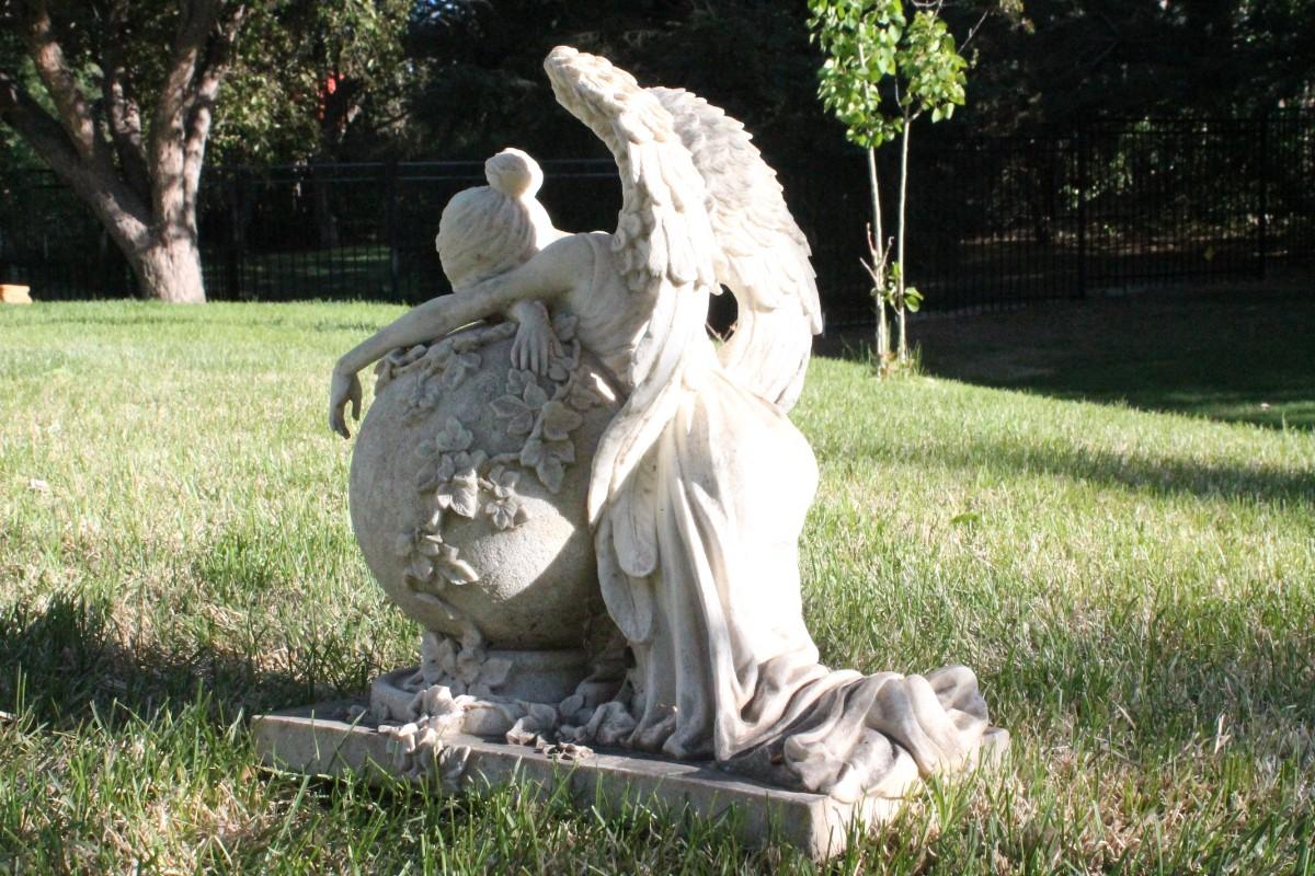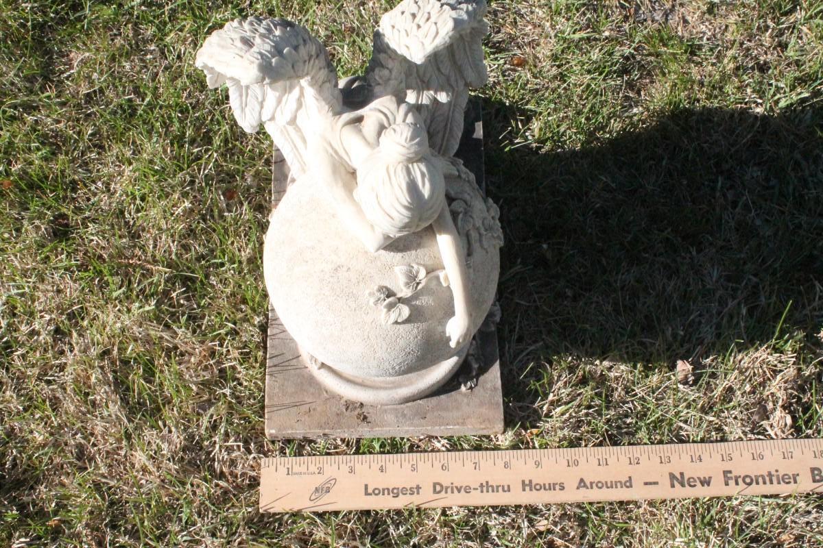 This vintage plaster garden feature shows a crying Angel.