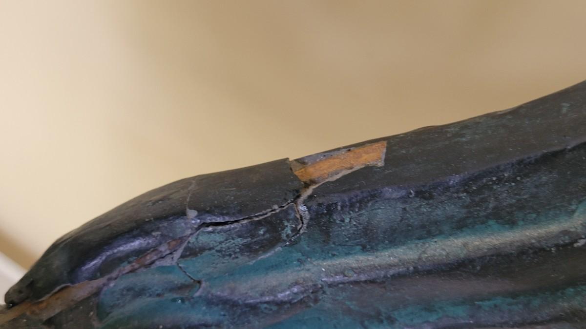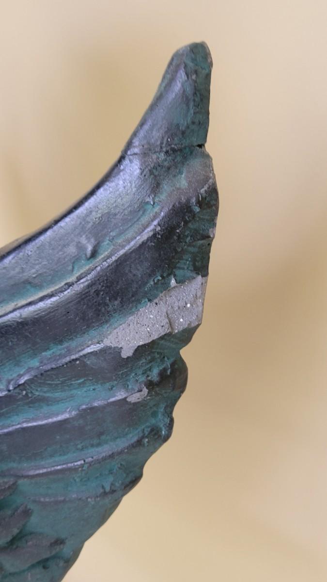 Made in Mexico. One of the wings has a chip and a crack but it is structurally still sound. Better in person!