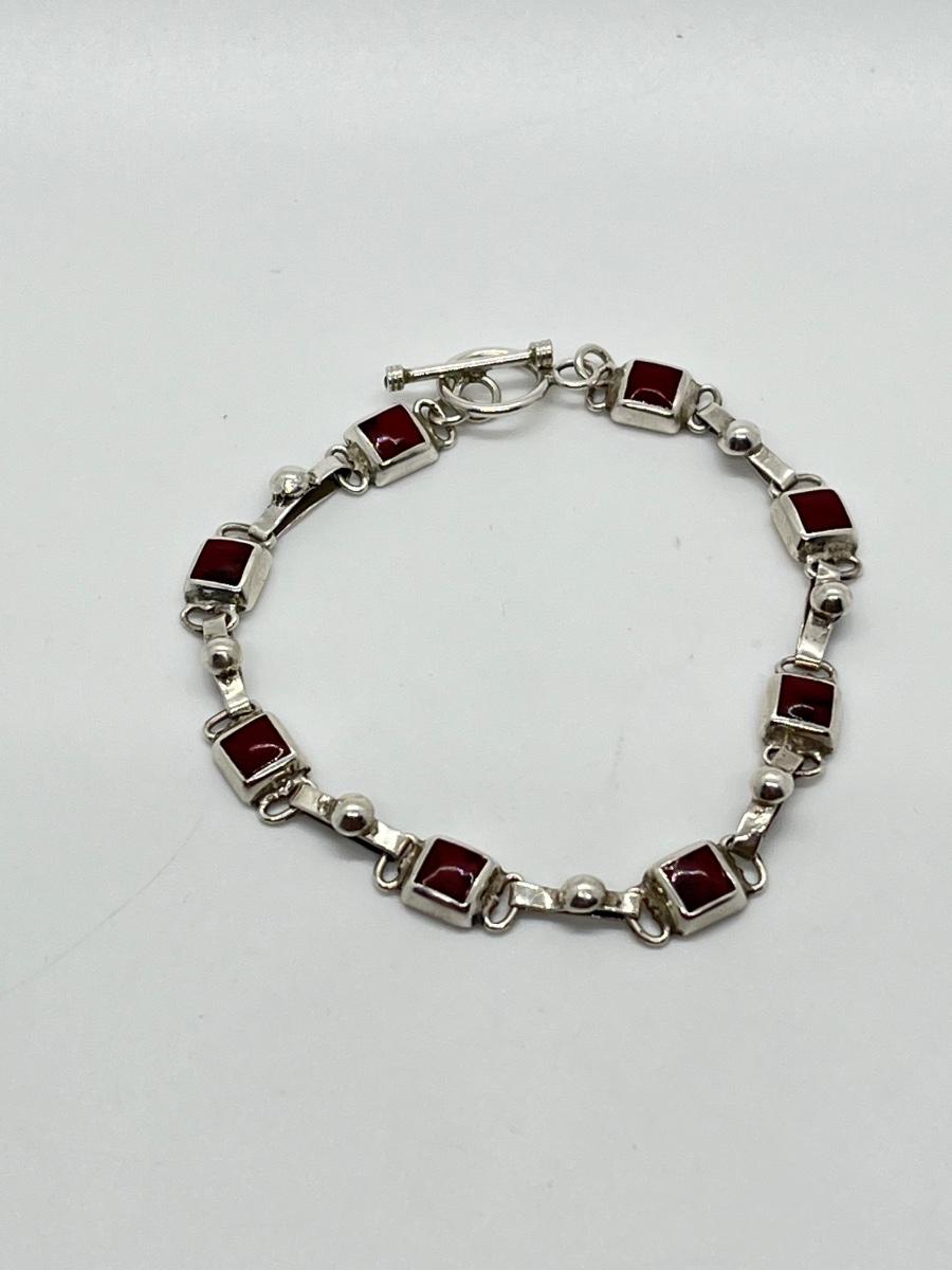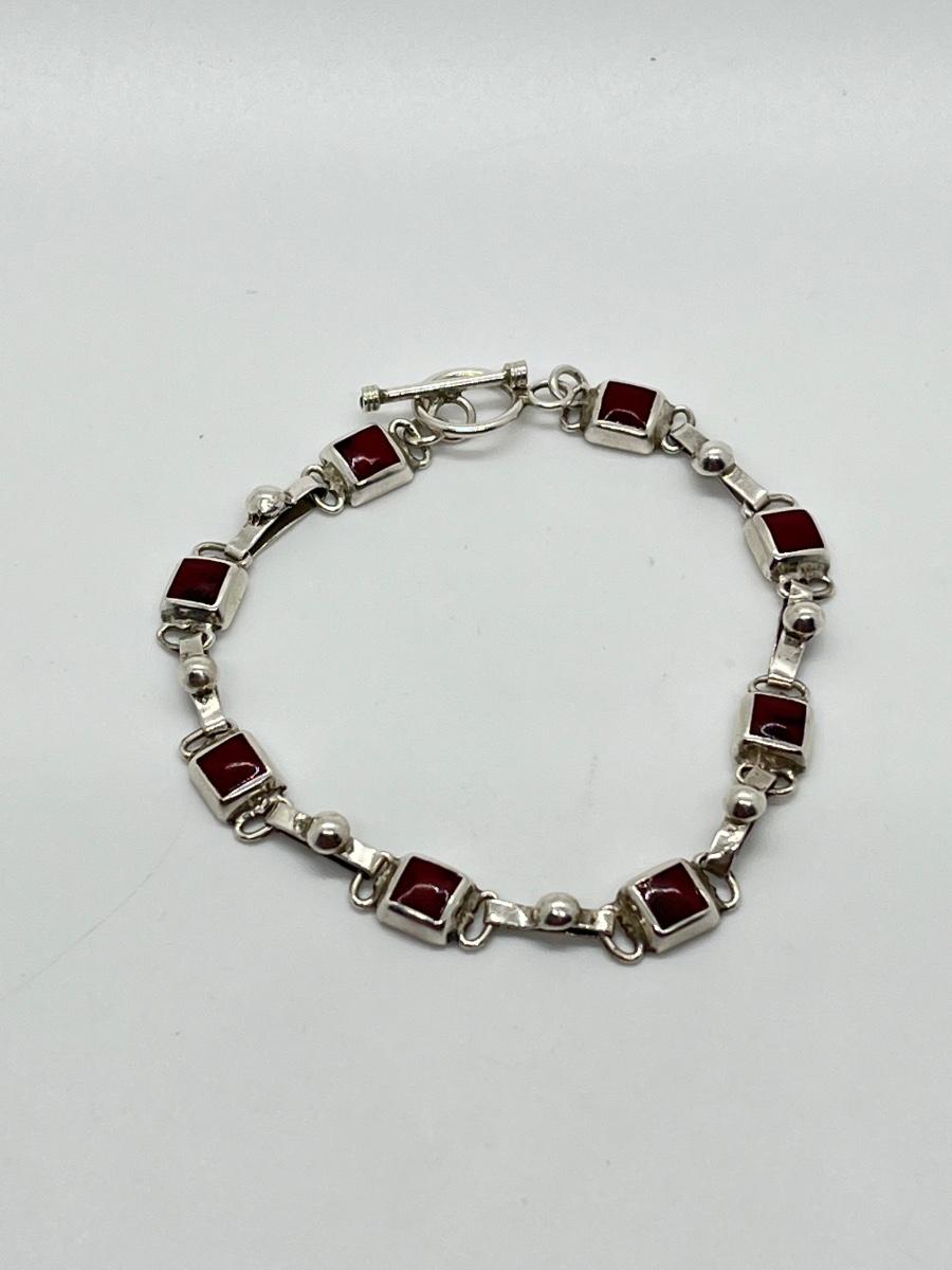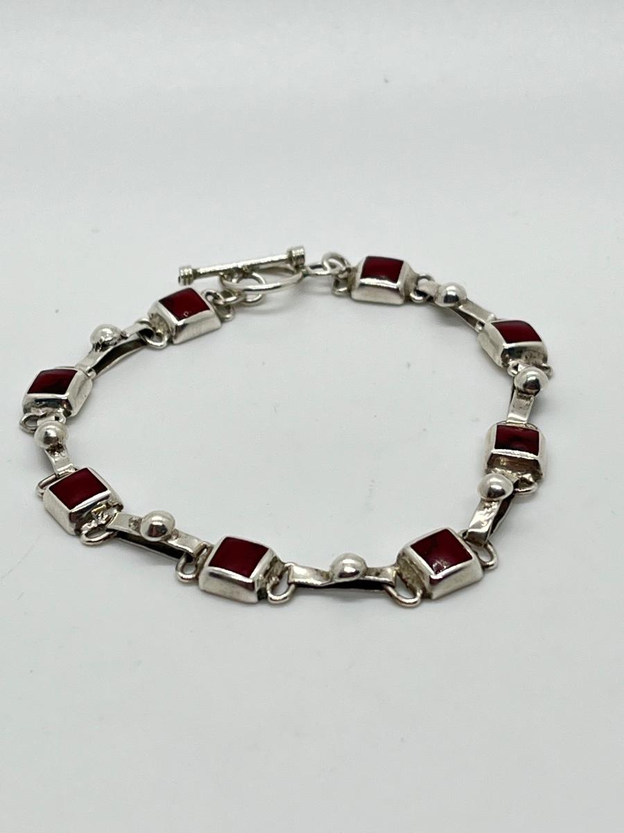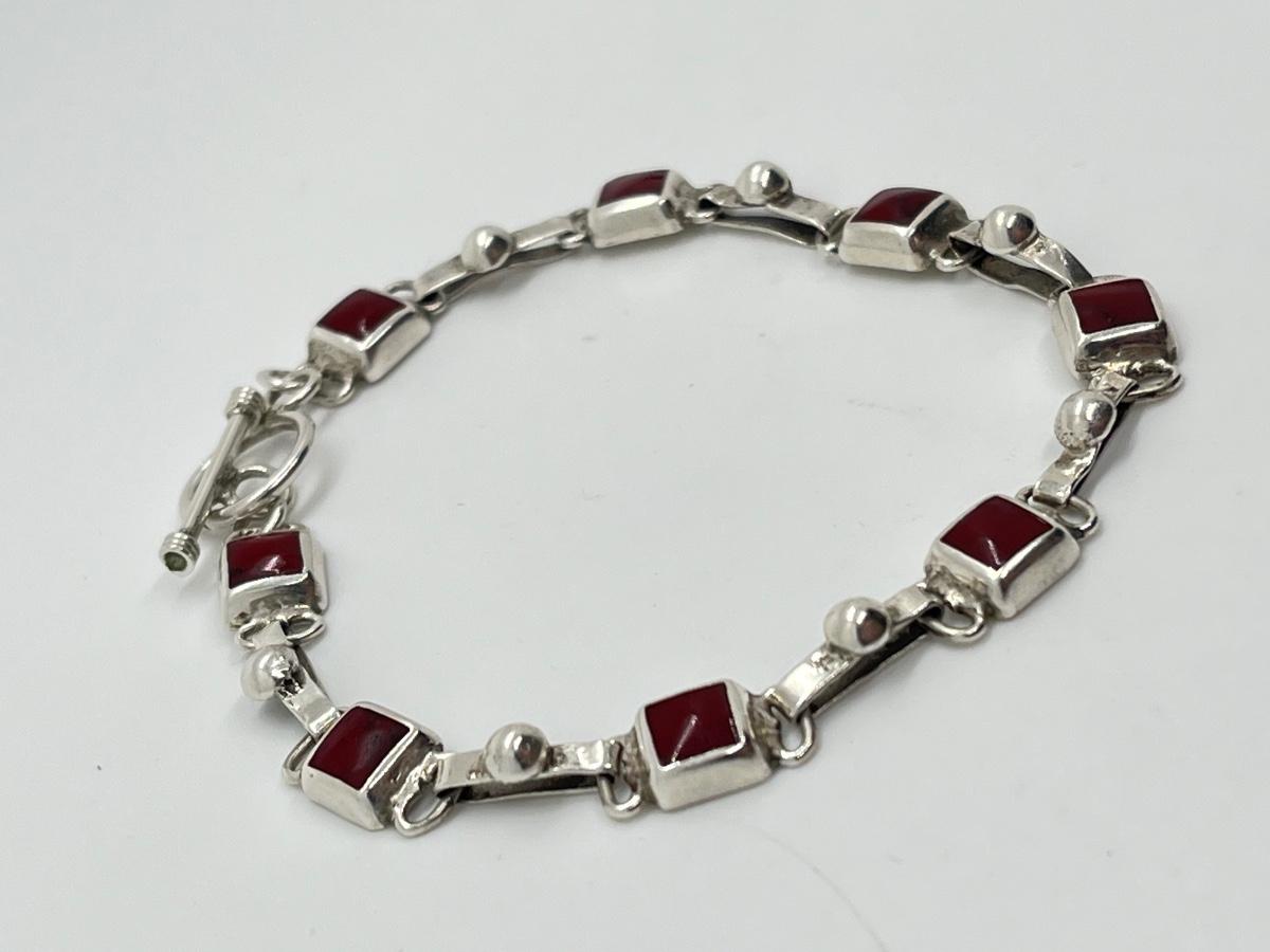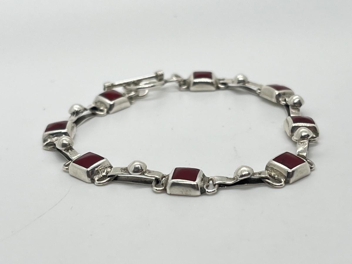 LOT 33: Red Coral and 925 Mexico Silver 8" Bracelet with Toggle Clasp