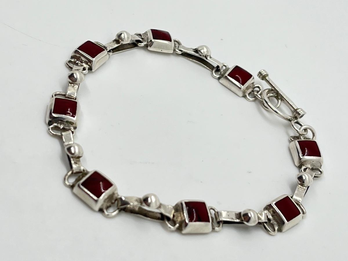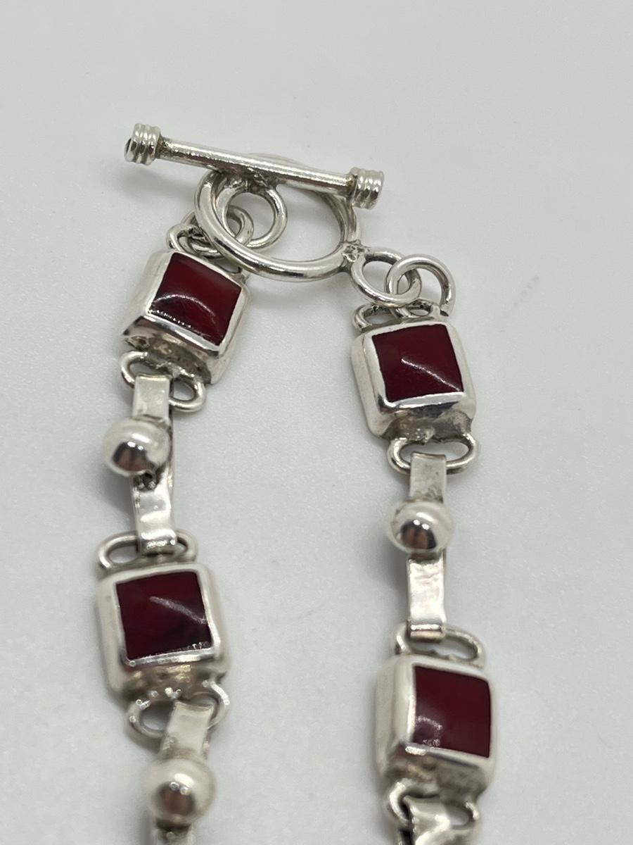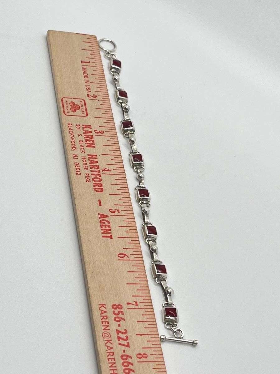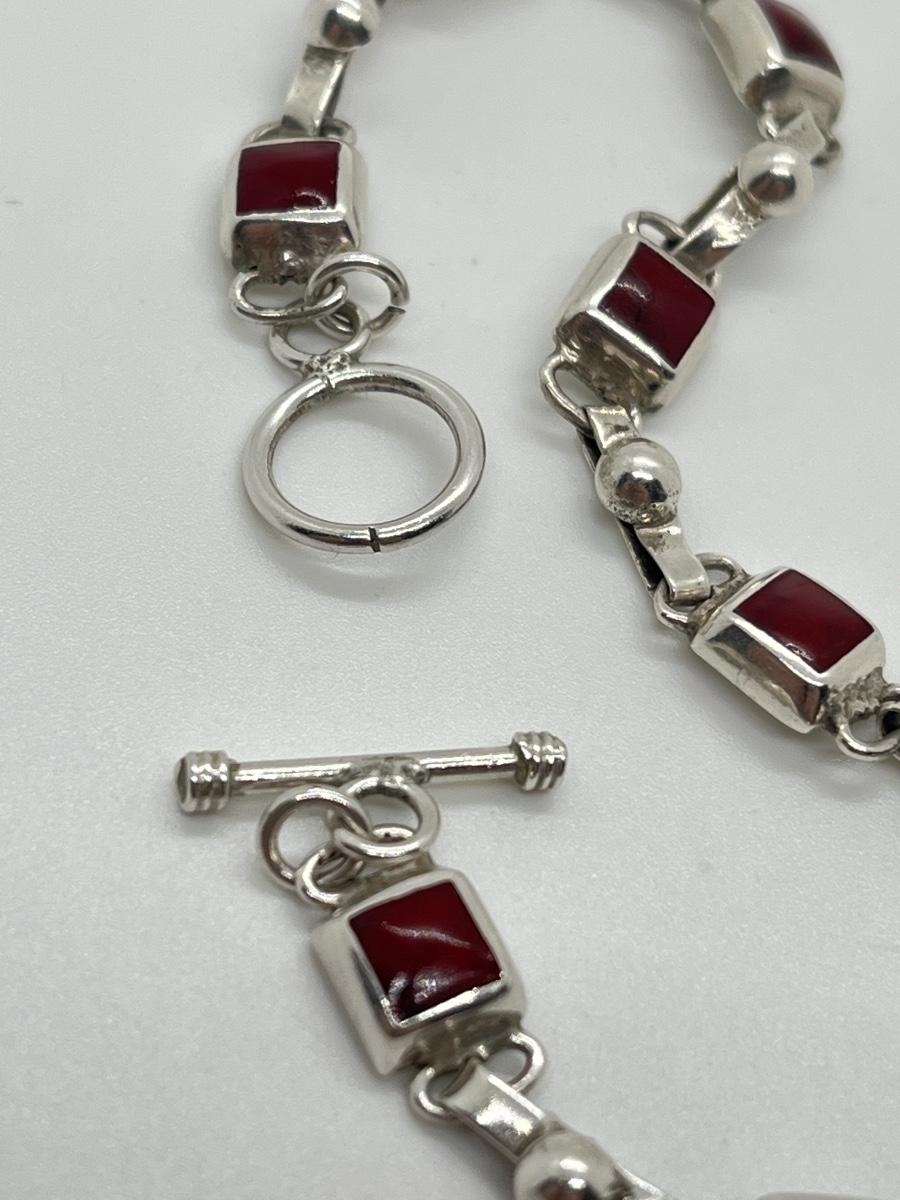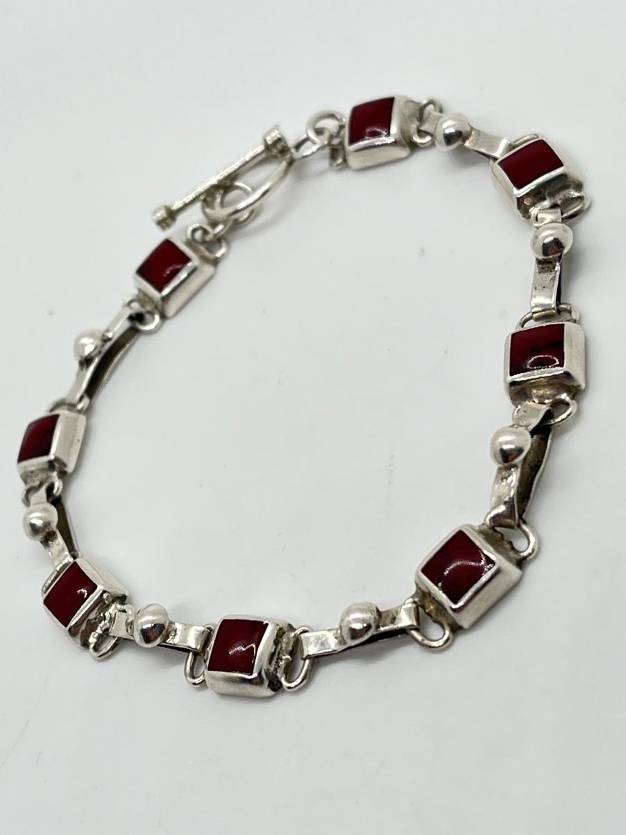 LOT 33: Red Coral and 925 Mexico Silver 8" Bracelet with Toggle Clasp