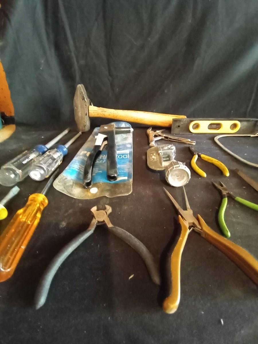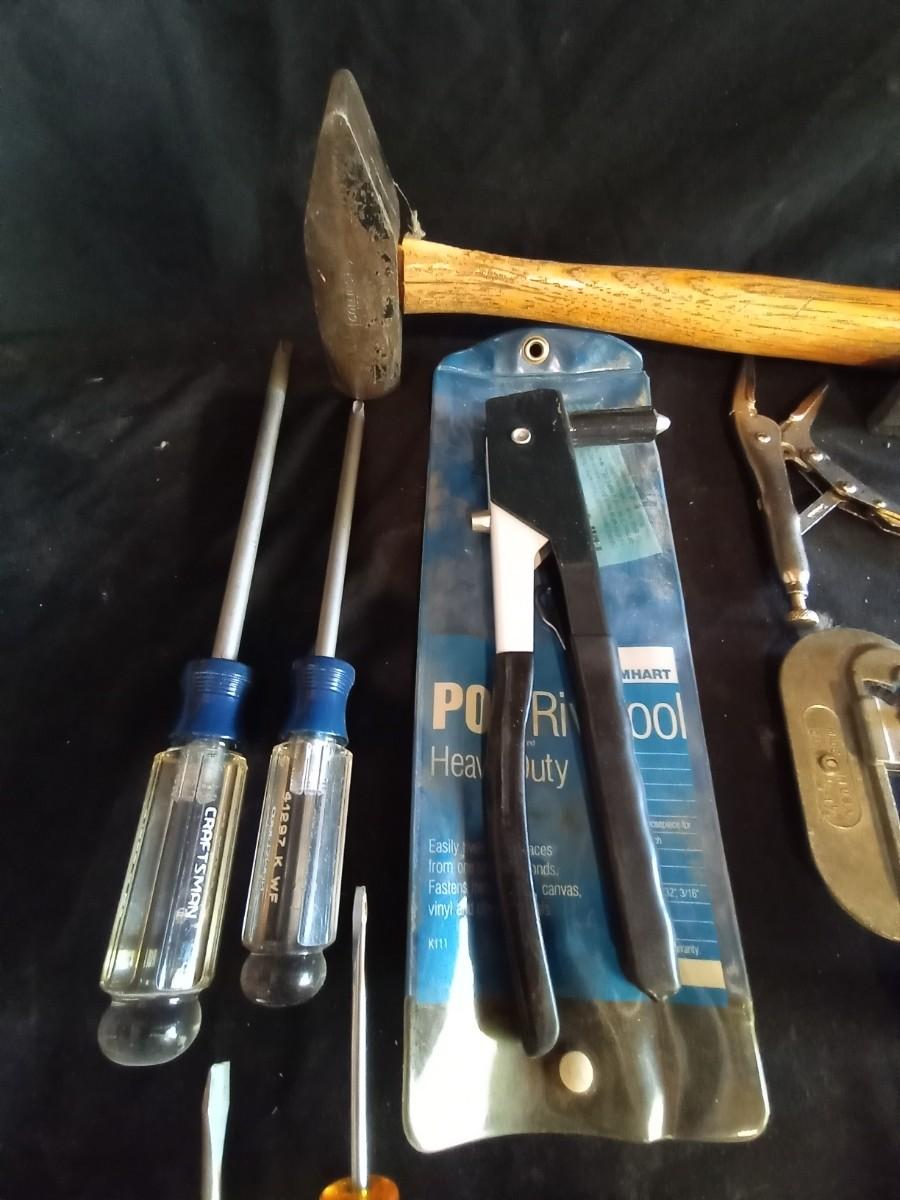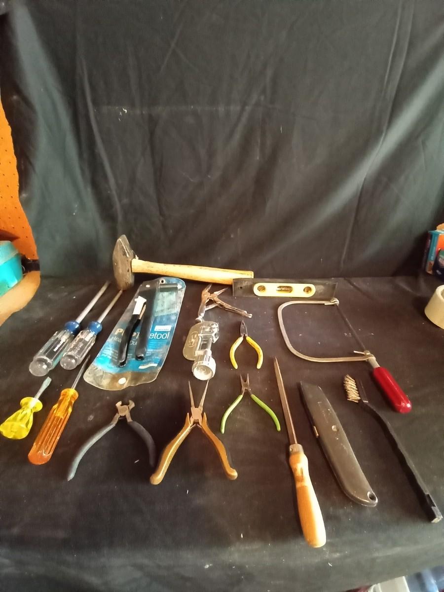 LOT 33 SLEDGE HAMMER AND VARIETY OF HAND TOOLS