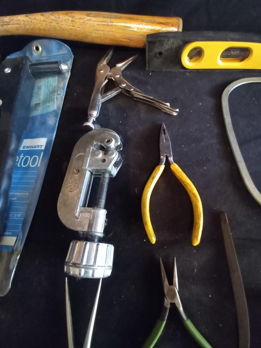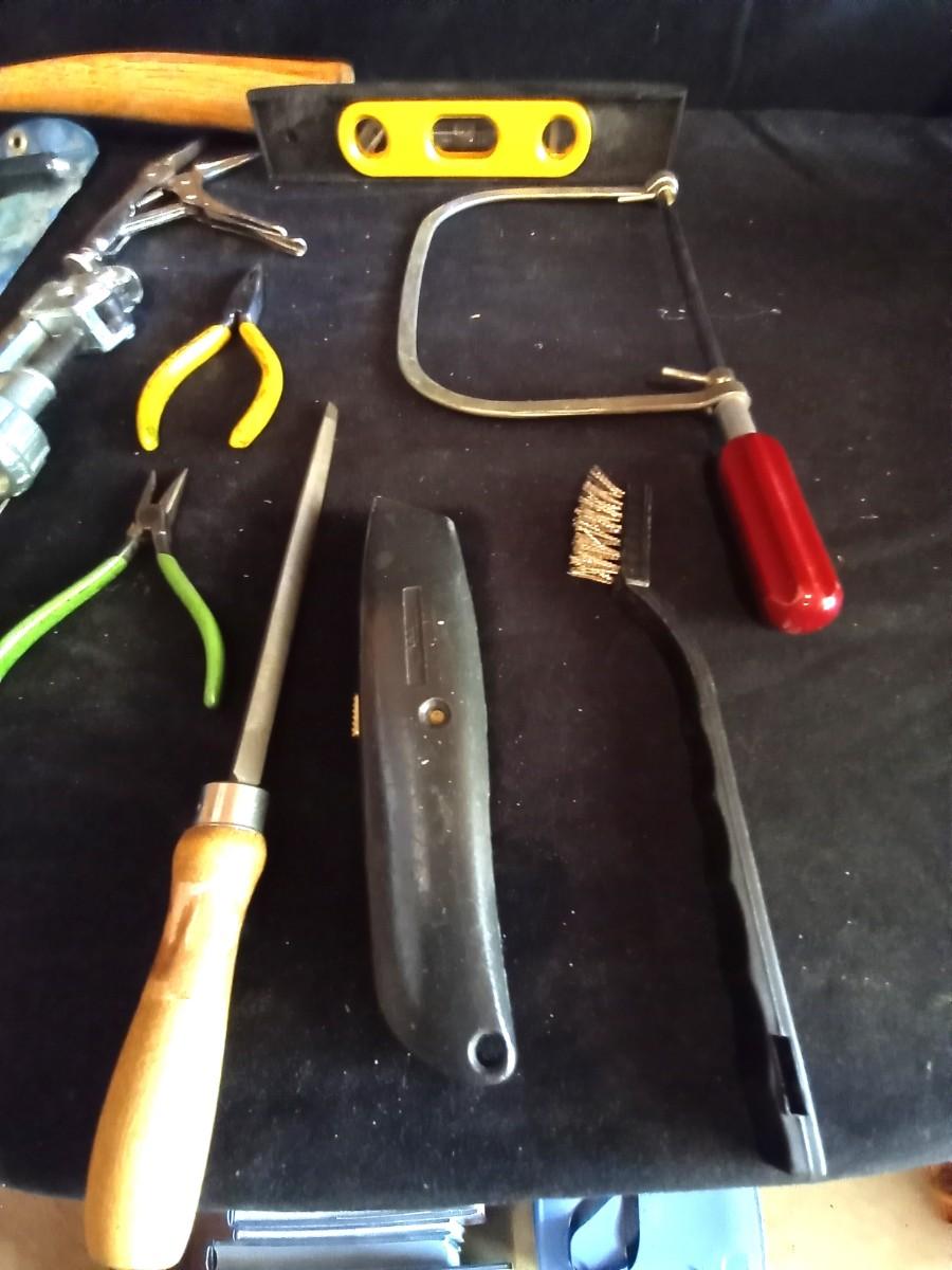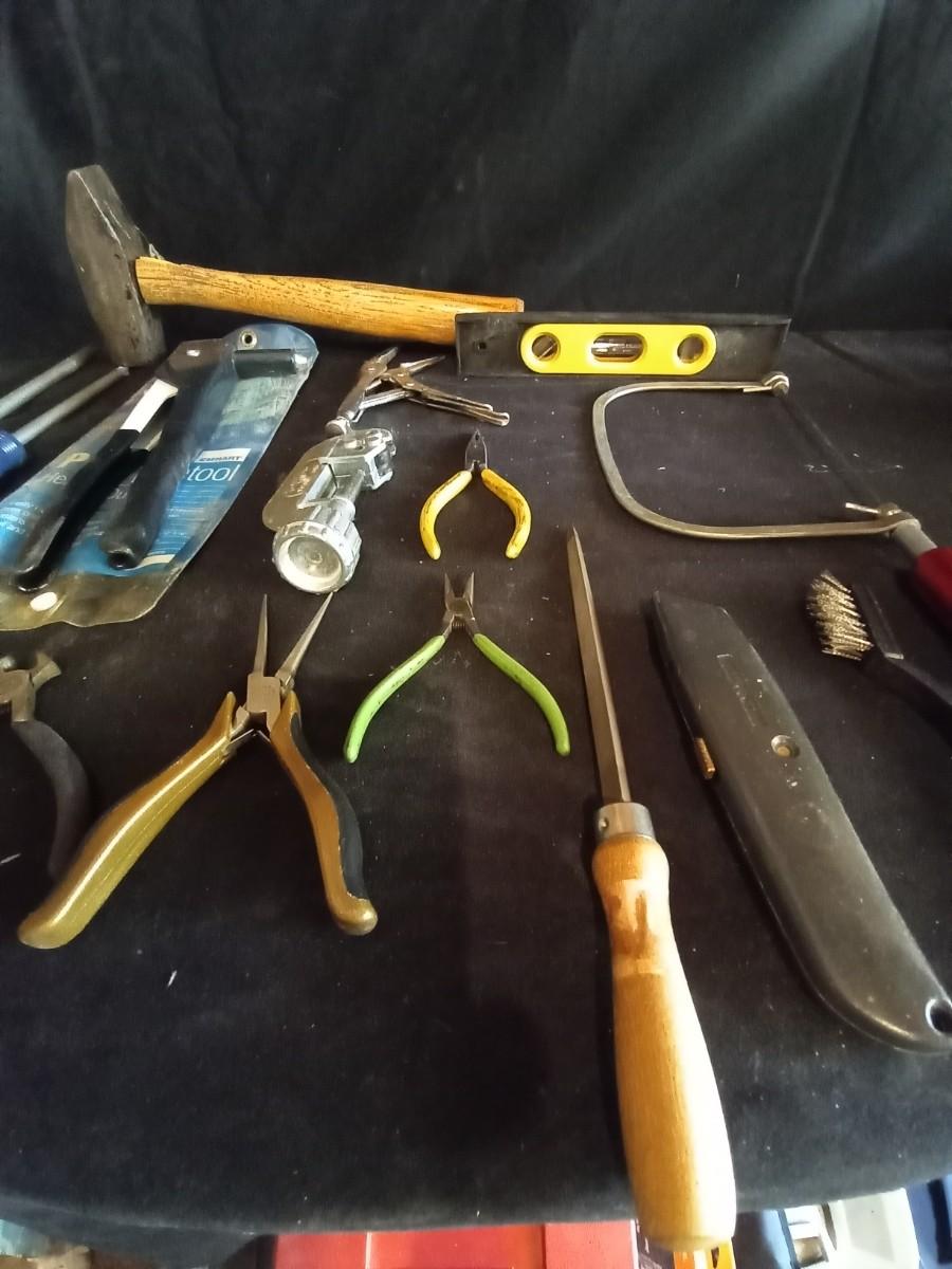 LOT 33 SLEDGE HAMMER AND VARIETY OF HAND TOOLS