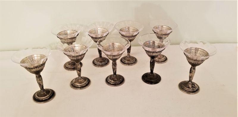 Lot #33 9 Crystal Cordial Glasses with Sterling Silver bases