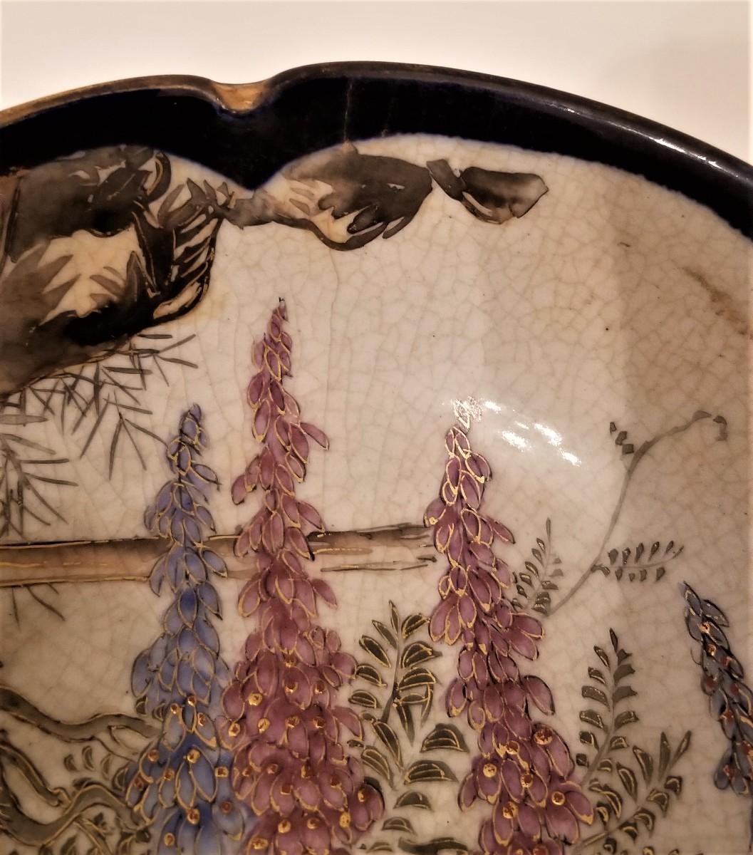 Lot #33 Antique Satsuma Bowl on stand - Wisteria pattern