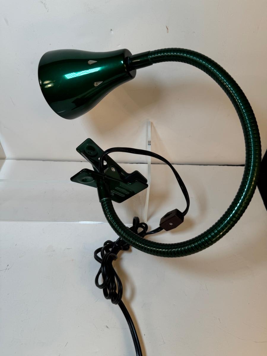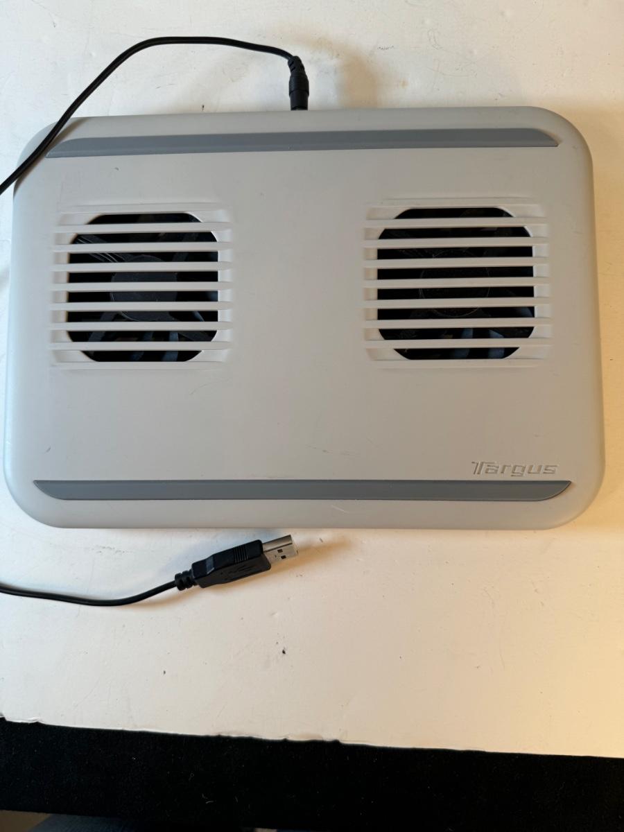 Includes Targus Laptop fan Model AWE39US, Logitech Carl Zeiss Tessar 2.0/3.7 2MP Autofocus clip-on camera with carry case and green clip on desk lamp, requires a 40 Watt type G bulb.