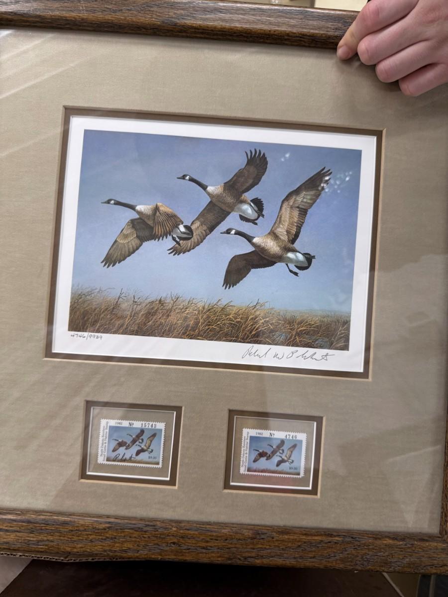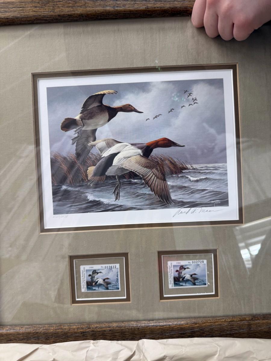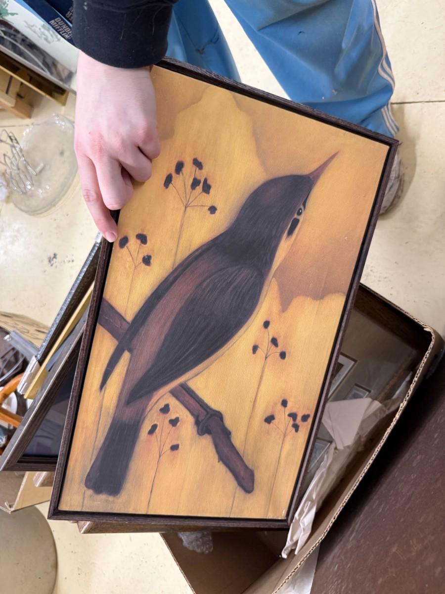Mostly empty frames, some prints including Terry Redlin, large foam pieces in back