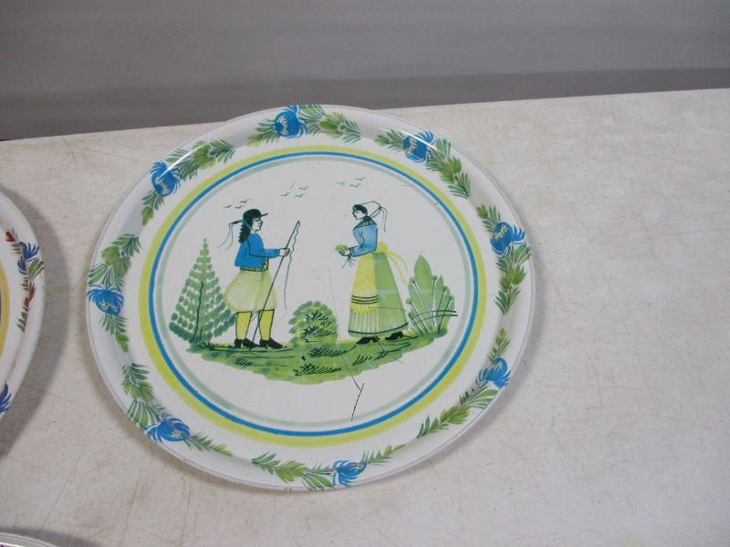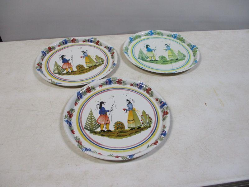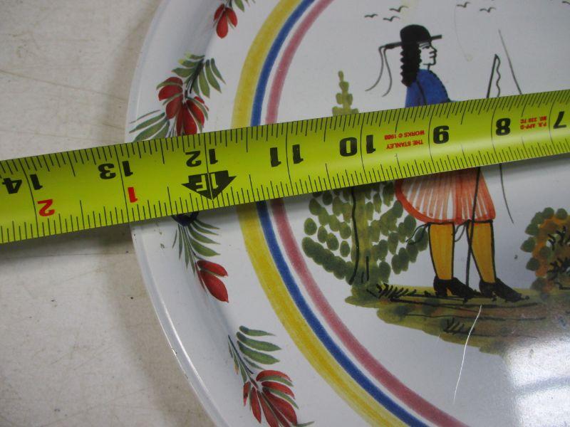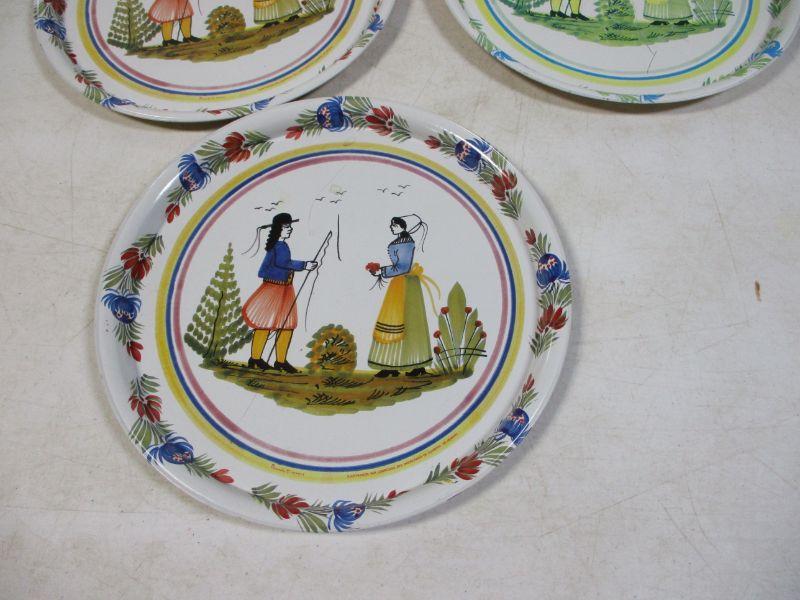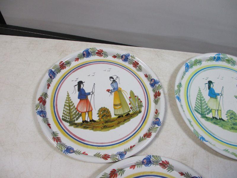 Lot 33 - HB Quimper France Round Decal Metal Platters