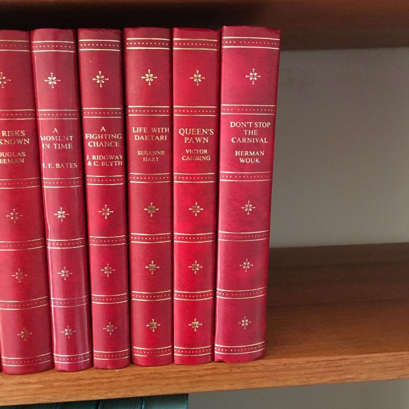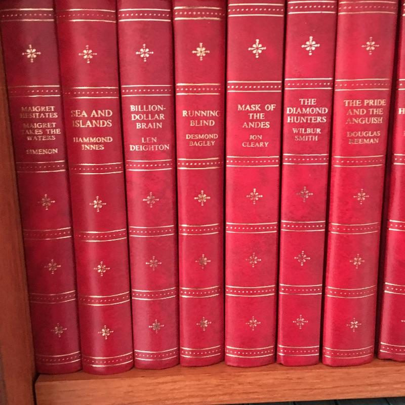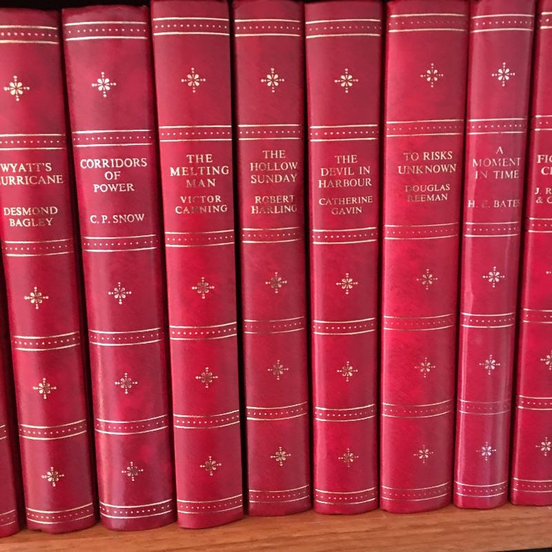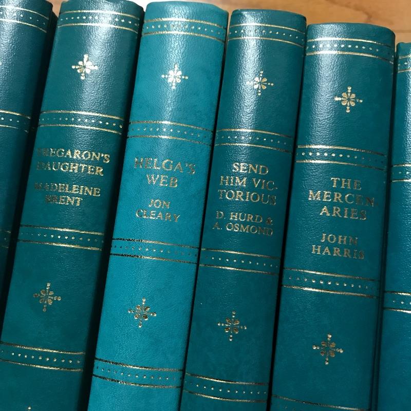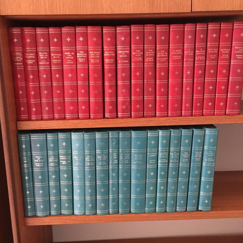 These beautifully leather bound books would look great with your current library! They are from Companion Book Club in London and are in great condition. They are published in the late 60s and 70s. There are two sets - one in red and one in turquoise. Include authors like Jon Cleary, Howard Spring, John Harris, Gavin Lyall, David Beaty, Desmond Bagley, Victor Canning and many more.