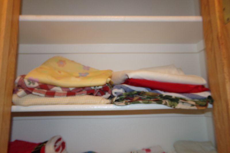ROUND TABLECLOTHS, MATTRESS PADS (TWIN SZ), SHEETS AND PILLOWCASES, SMALL THROW RUGS