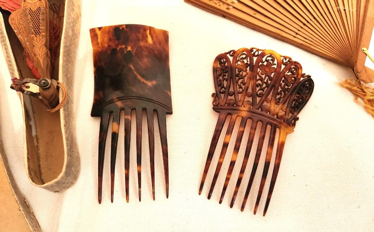 Lot #33 Lot of Three Vintage Fams and 2 Hair Combs