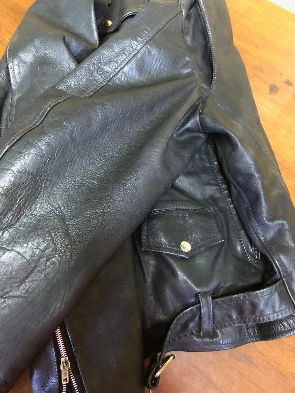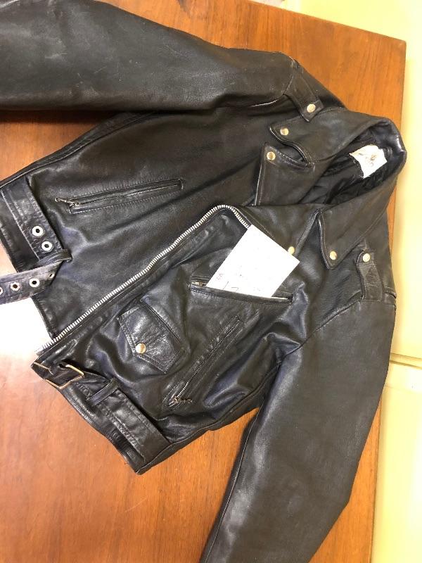 Mens leather motorcycle jacket size 44: Vintage used condition