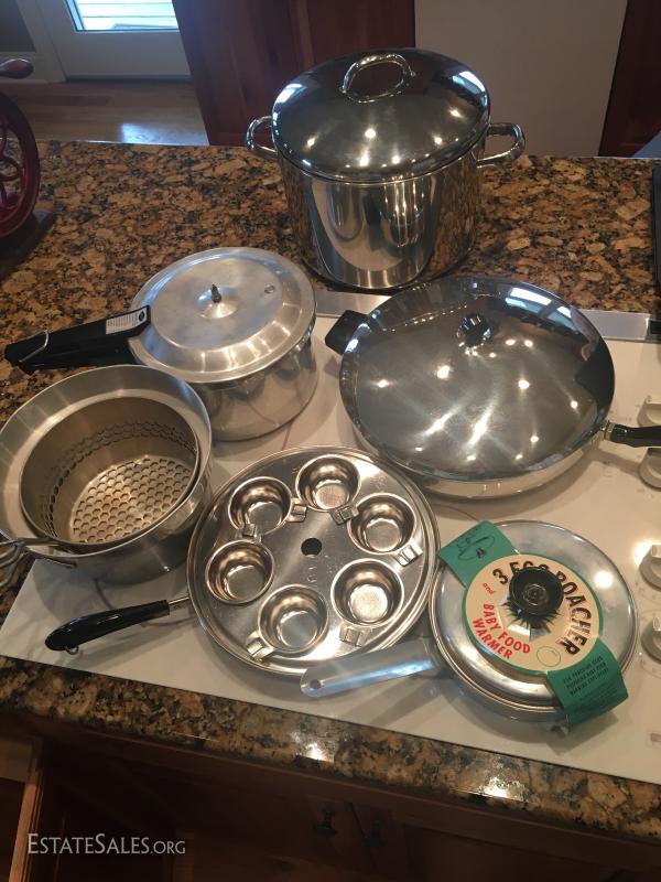 Stainless Steel pots and pans includes Egg poacher, baby food warmer and more.