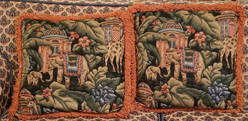 Lot 33: Red Chenille Trim Decorative Pillows (2)