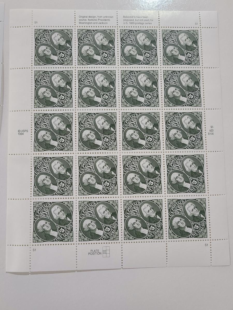 Lot 33: Retail $120 in Stamps ($1.00 and $5.00 Stamps Sheet)