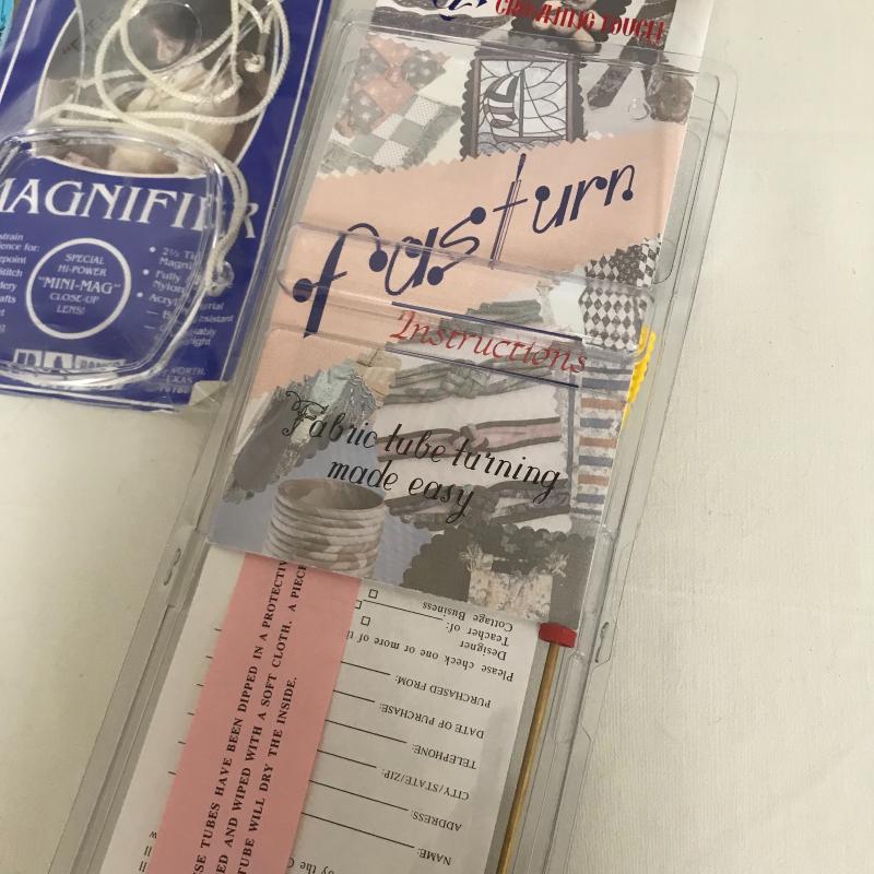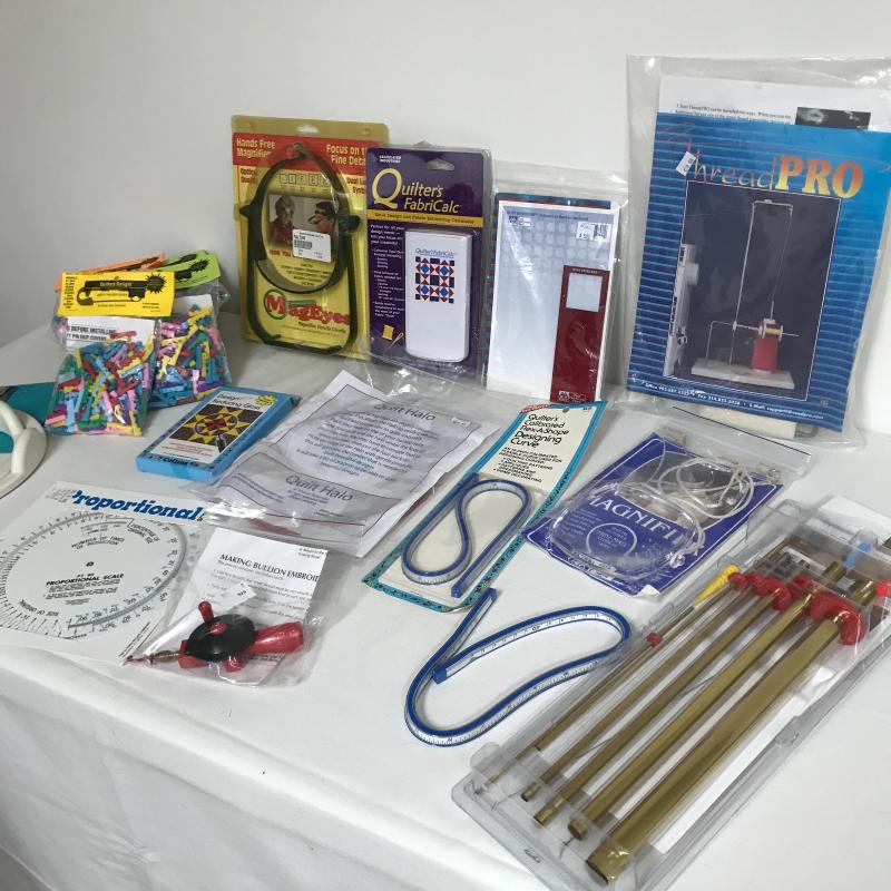 This lot contains many different sewing and quilting tools to make your sewing experience easier and more fun. Fast Turn tube turner, Thread Pro, magnifying glasses, flexible curve, bullion embroidery maker, proportional scale, quilt Sew Easy, Quilt Halo, fabric calculator, safety pin grip covers and more. See pics. Shipping available.
