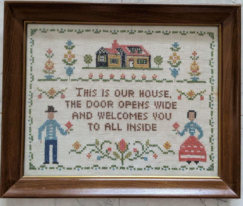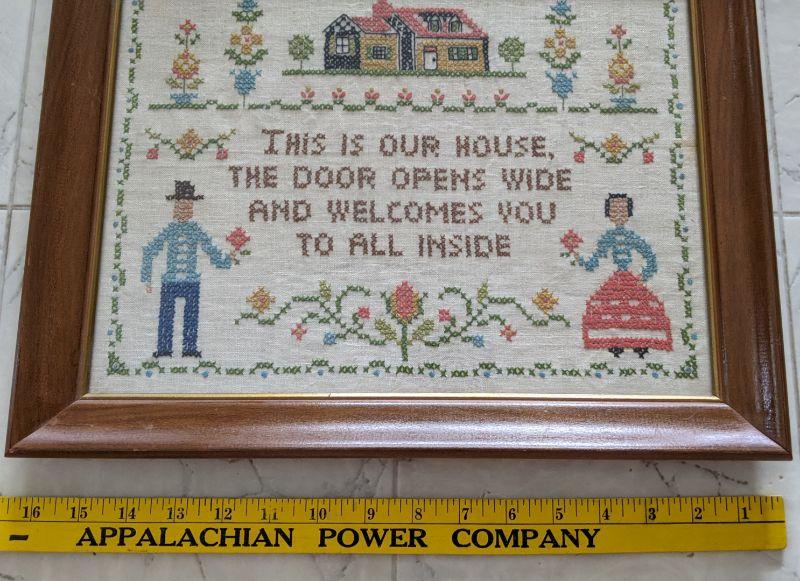 Lot # 7 -Vintage Cross stitch in Wooden Frame THIS IS OUR HOUSE, THE DOOR OPENS WIDE...