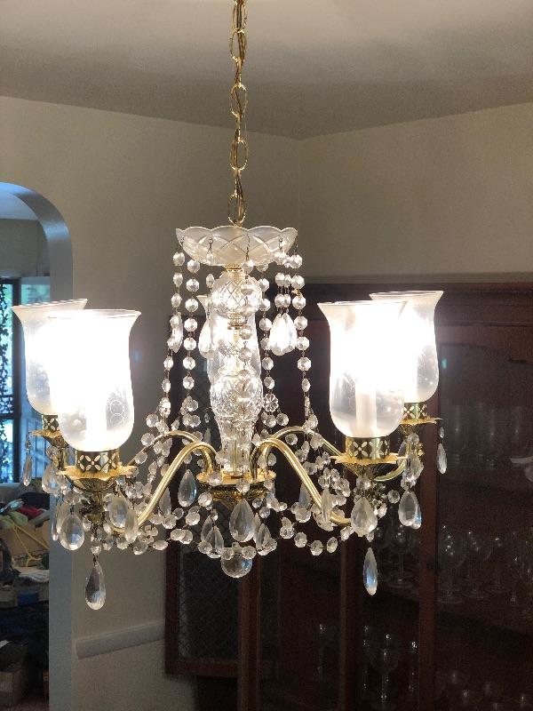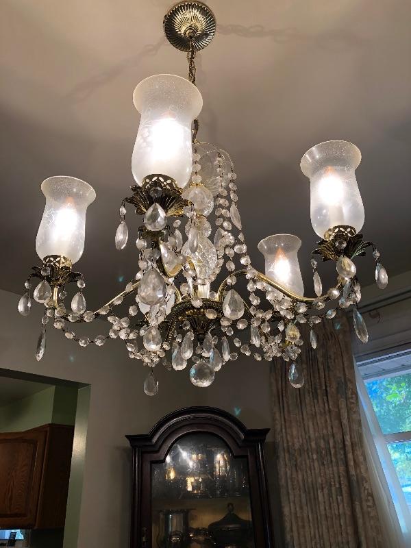 Vintage Crystal Hanging Chandelier with four glass etched globes