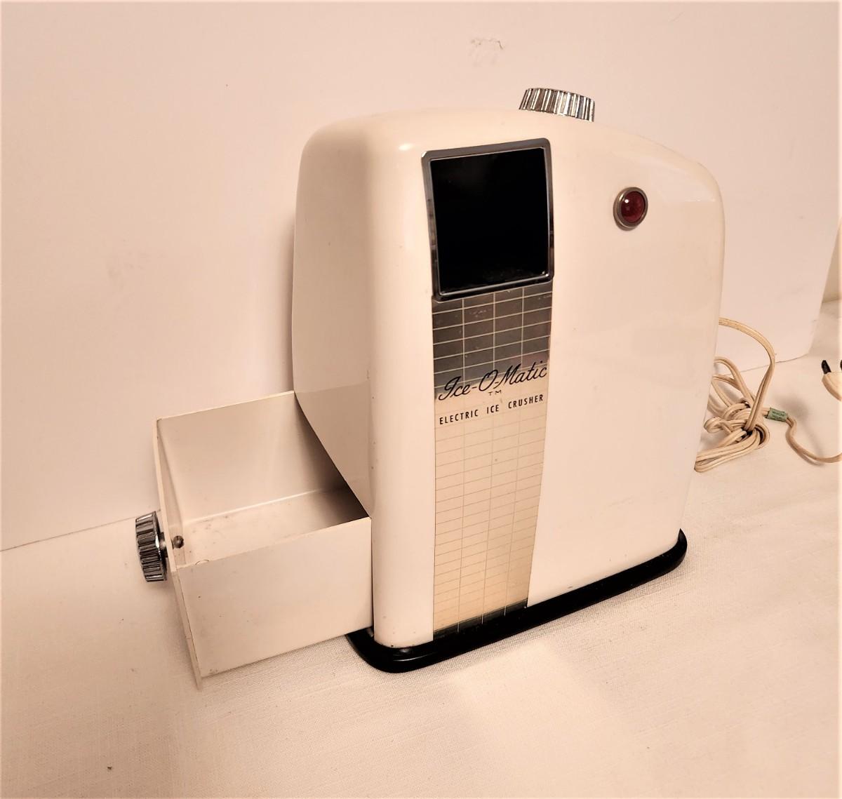 Good looking vintage (60's) Ice O Matic Electric Ice Crusher - works - clean, good condition. 10" tall.
