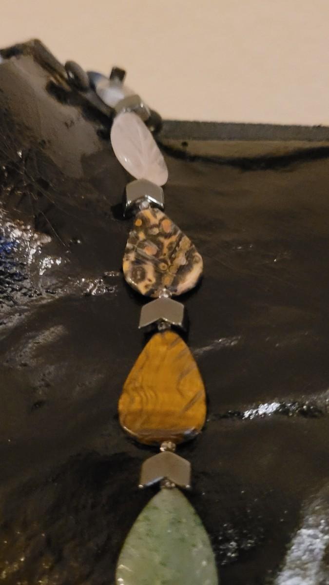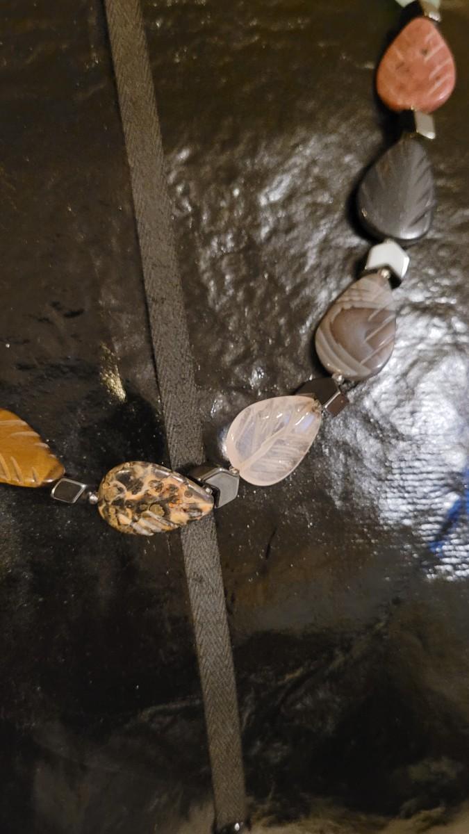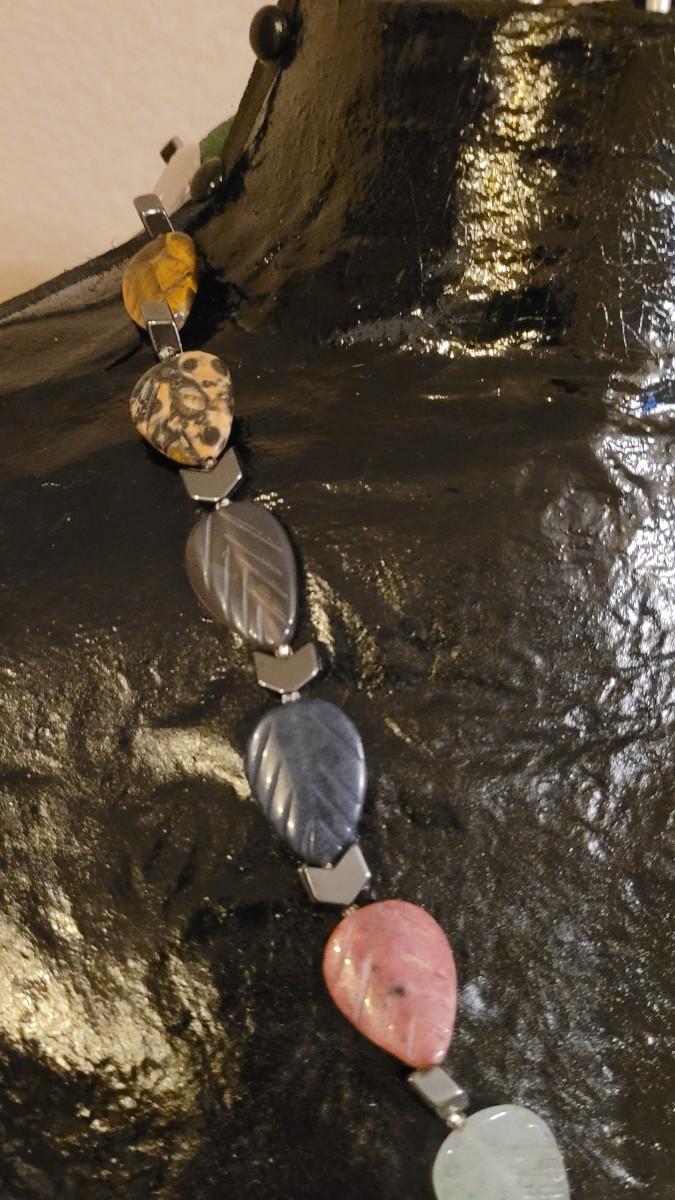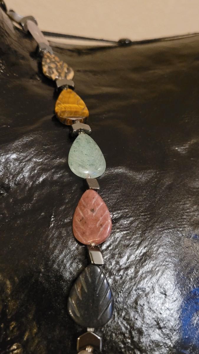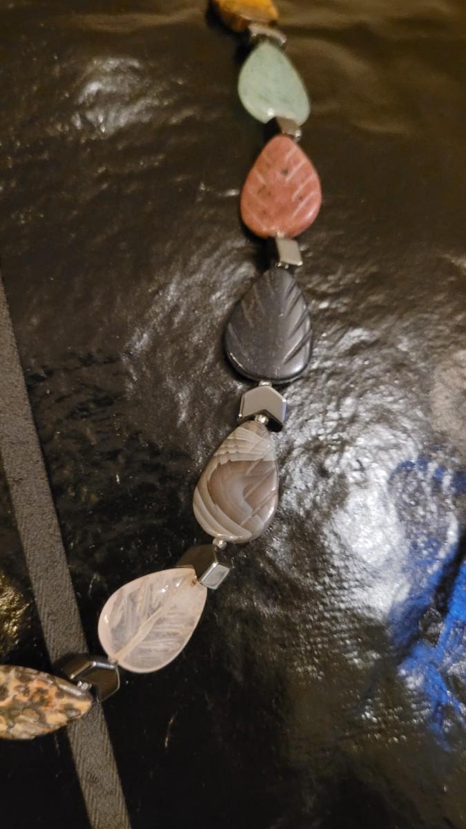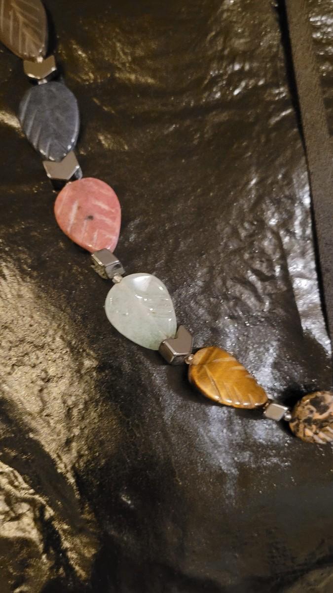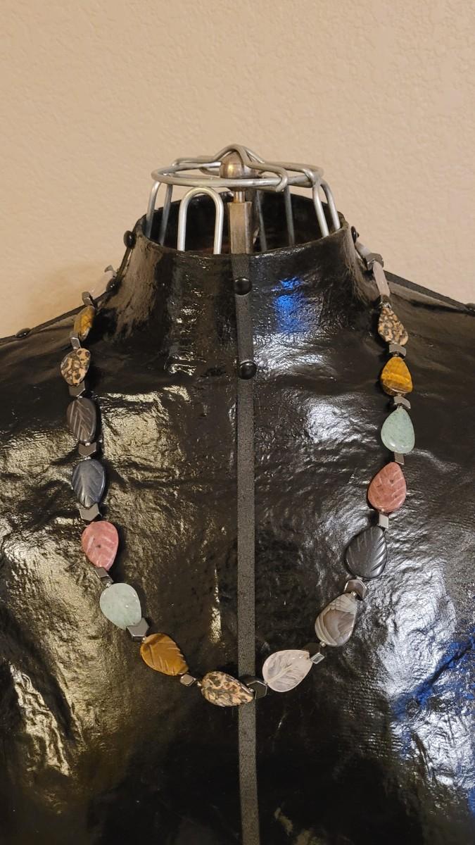 Lot 330: 24" Multicolored Stone Leaf Necklace