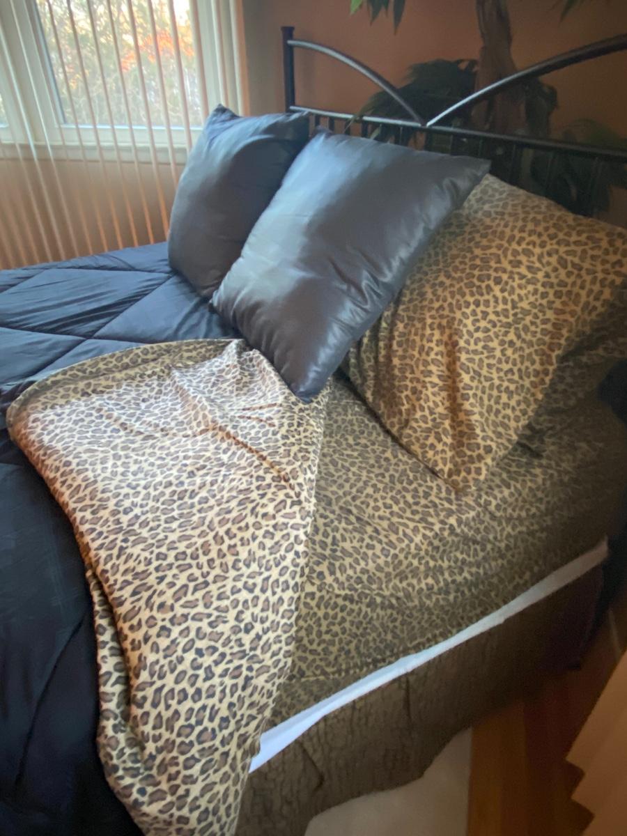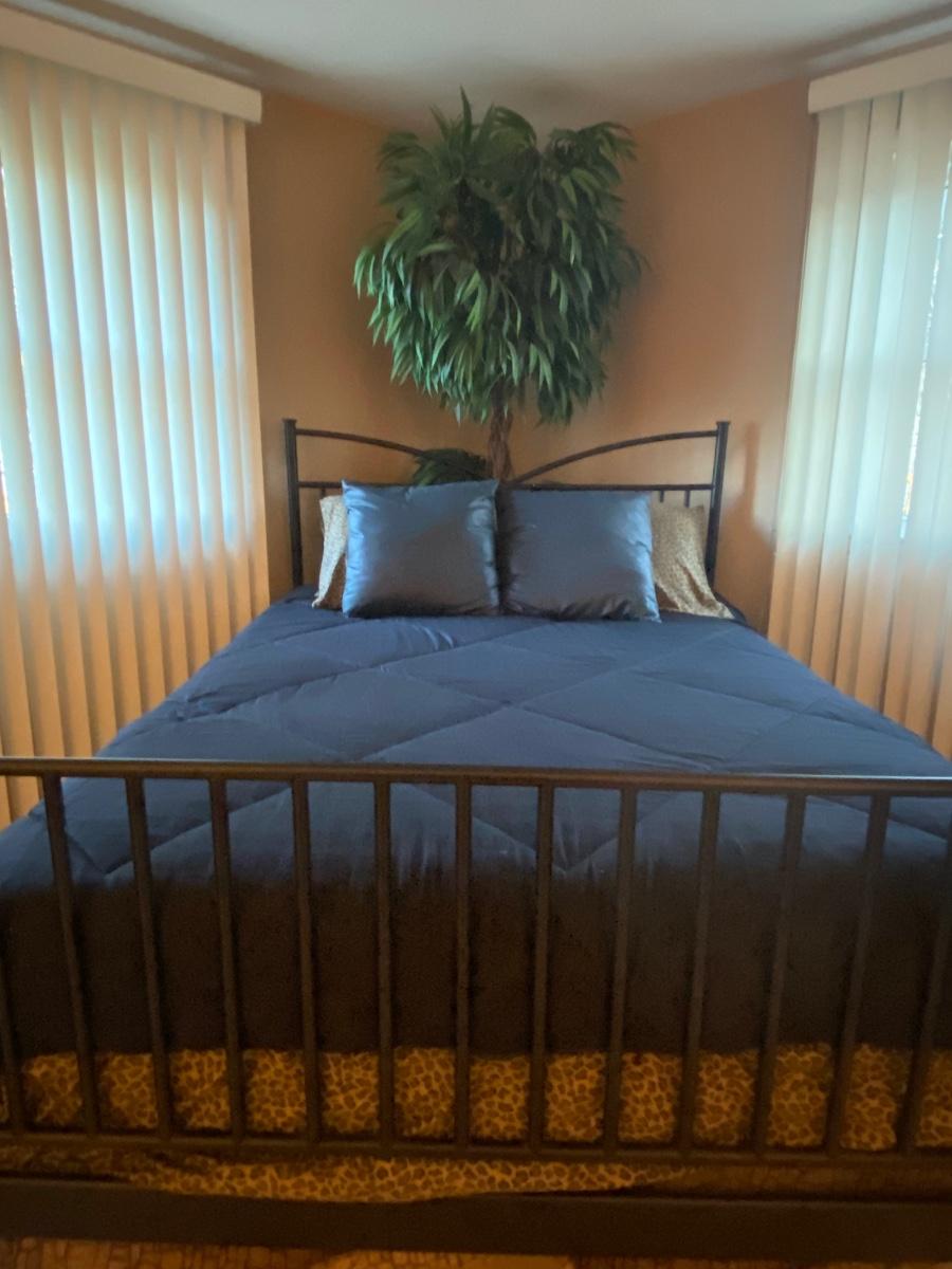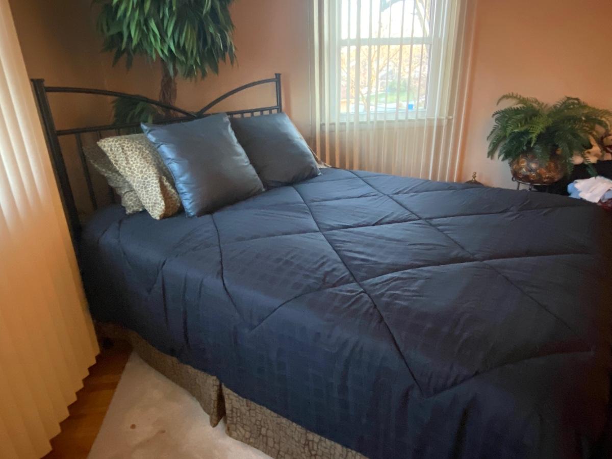 Queen size bed, metal frame and bedding. Mattress, Topper, and box spring is included or can will be donated to buyer upon request. Please see all pictures as they are the best representation of the items. The pictures show condition, measurements if taken, and what is included in the lot. Due to the large amount that we photograph and the time frame, we are not always able to take measurements. All items unless noted, are pre-owned and have been used. If you purchased furniture, you must bring help. We do not allow one person to carry large furniture out on their own. Bring help, tools and a truck for the safety of our client’s homes, and your personal safety. Company policy. Thank you.