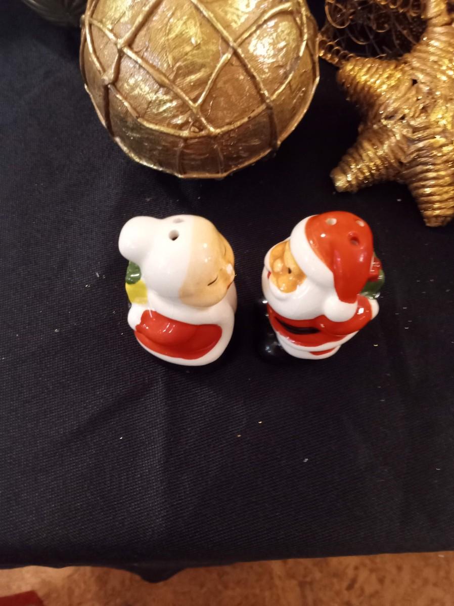 WOODEN "JOY" TABLETOP DECOR, MUSICAL AND ANIMATED "TWAS THE NIGHT BEFORE CHRISTMAS", METAL BASKET, SALT AND PEPPER SHAKERS