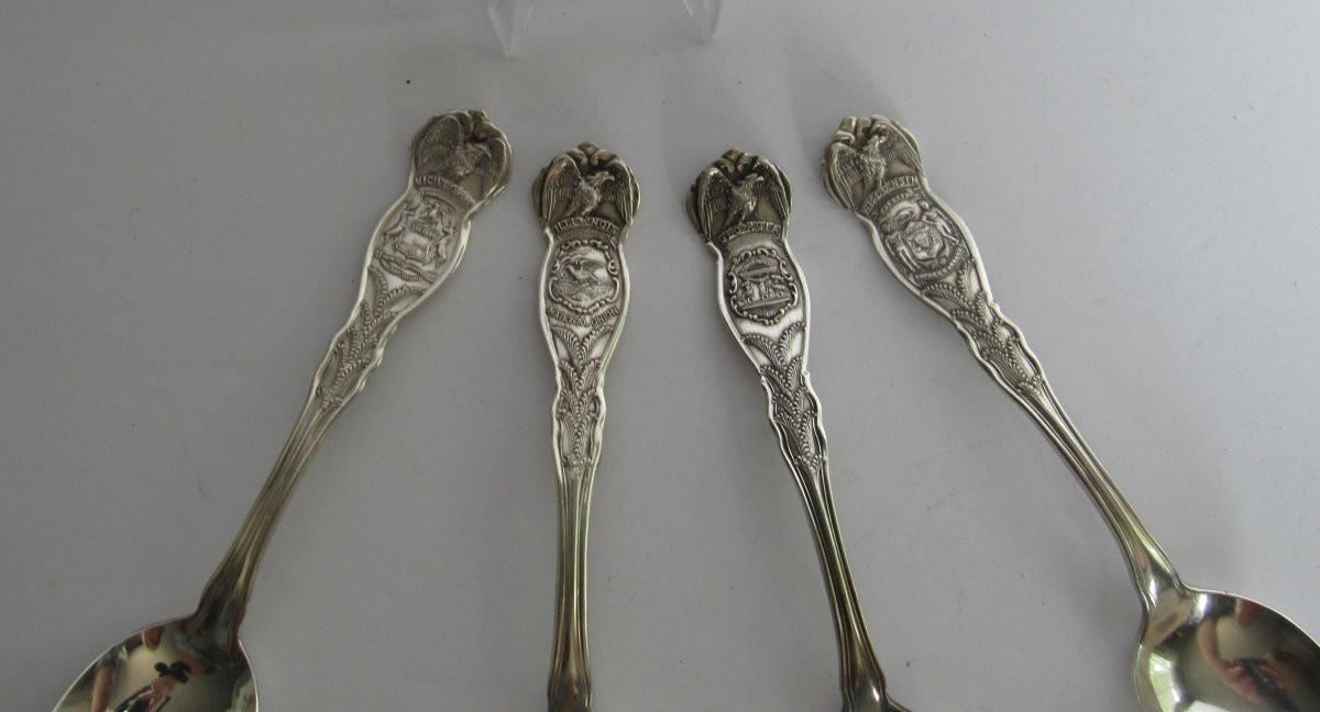 Lot 330: Lot of 4 Vintage Silver Plate State Spoons, WI, MI, IL, GA