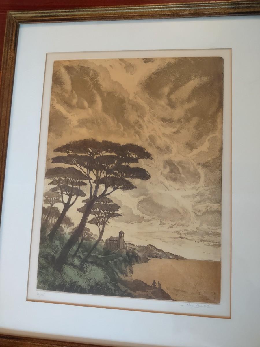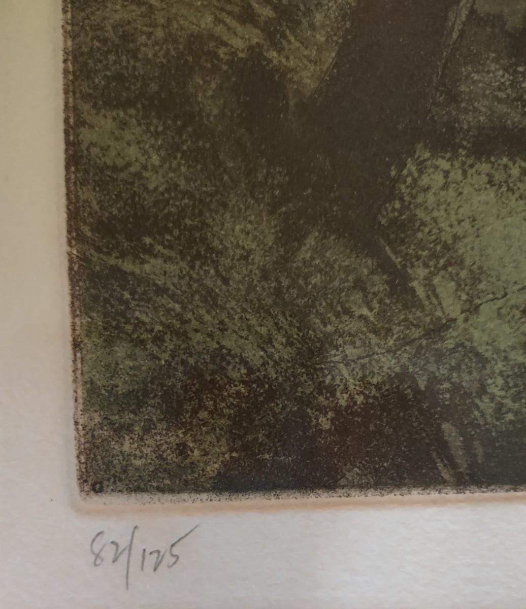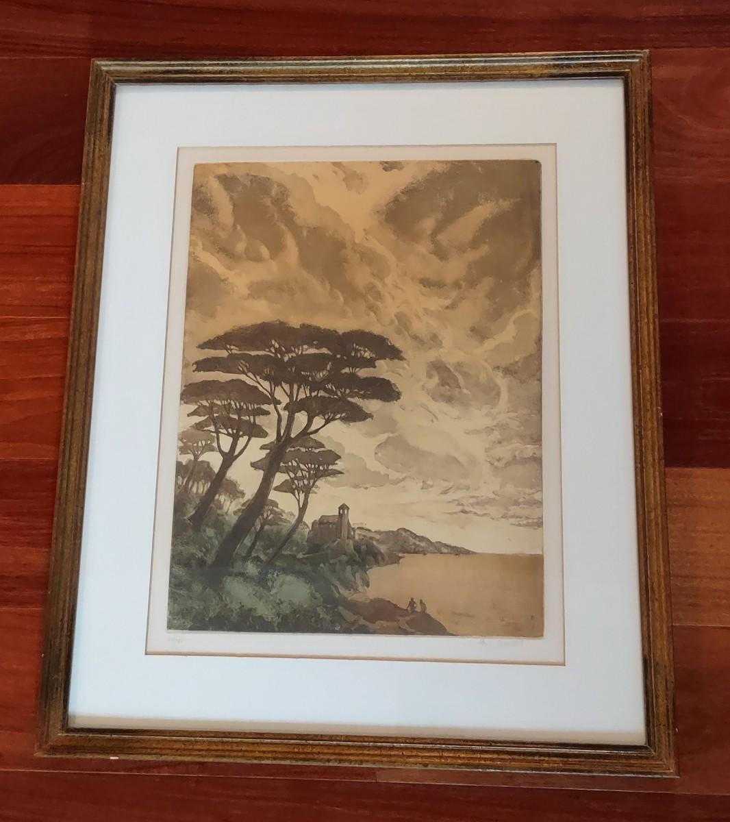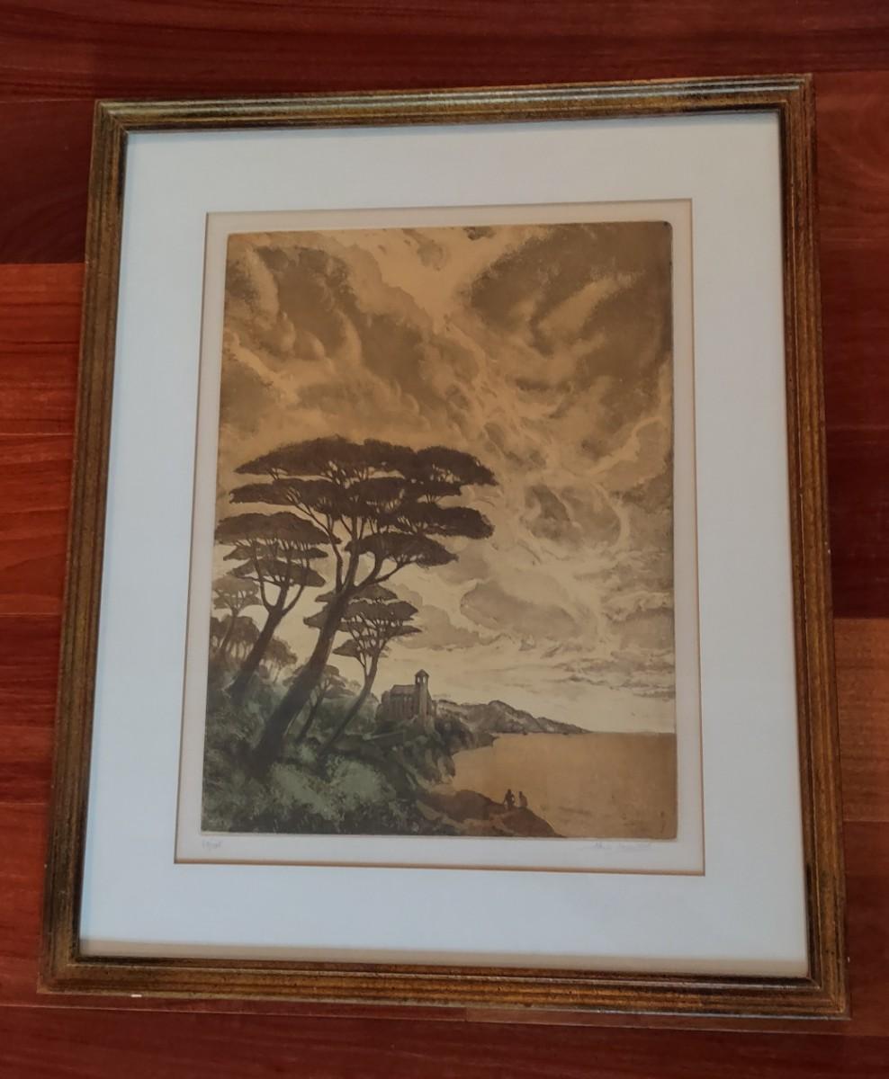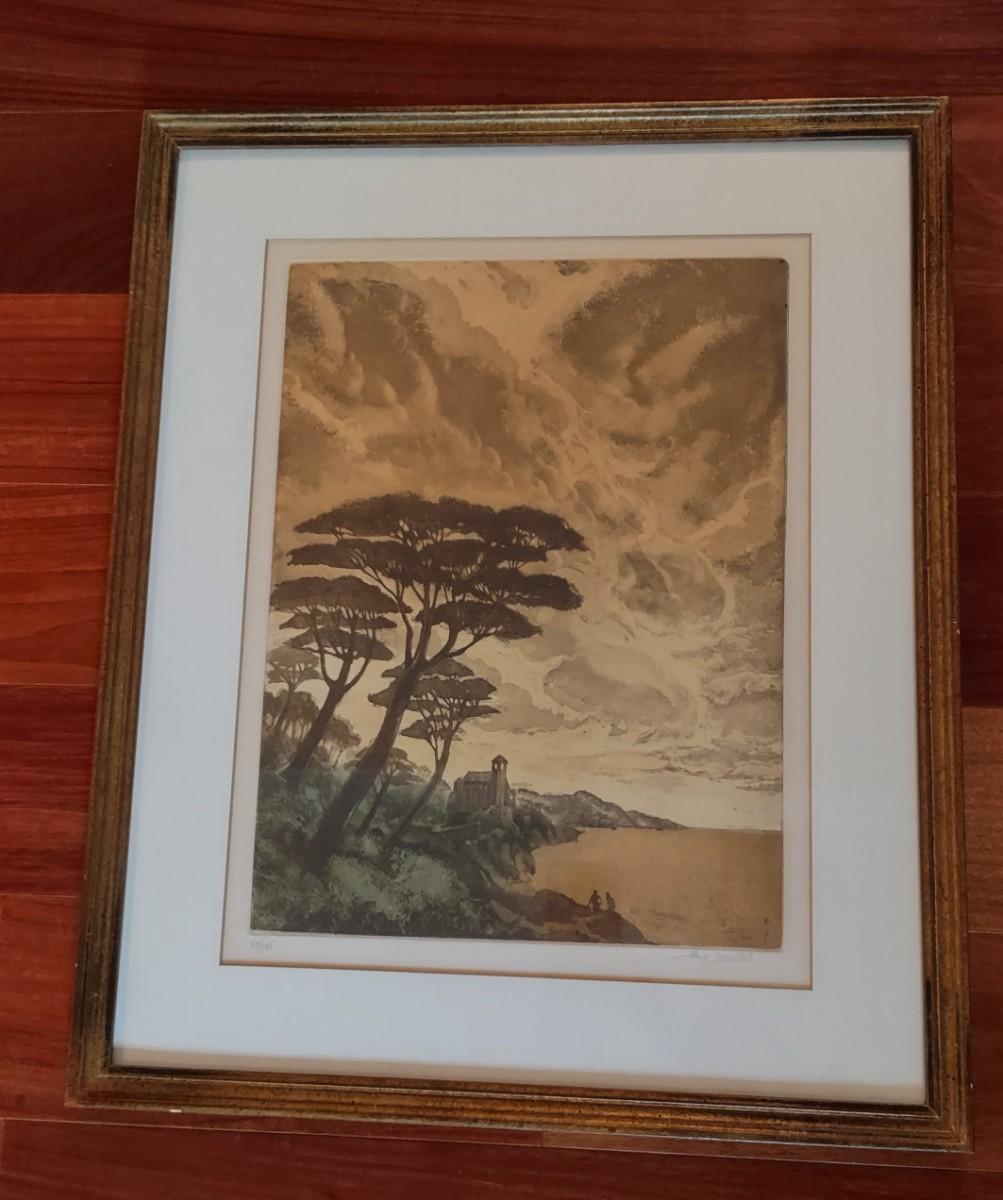 Hank Laventhol Artwork 19×23. This piece of work is a signed and numbered print 82/125 from an original etching by Hank Laventhol. This comes with a COA. 84x33x32 inches tall This lovely piece still looks brand new. This is striped with a gold tone as the base with deep maroons and greens. It is very comfortable and solid. There are two of these, and this is the first and it is under the window. Please see all pictures as they are the best representation of the items. The pictures show condition, measurements if taken, and what is included in the lot. Due to the large amount that we photograph and the time frame, we are not always able to take measurements. All items unless noted, are pre-owned and have been used. If you purchased furniture, you must bring help. We do not allow one person to carry large furniture out on their own. Bring help, tools and a truck for the safety of our client’s homes, and your personal safety. Company policy. Thank you.