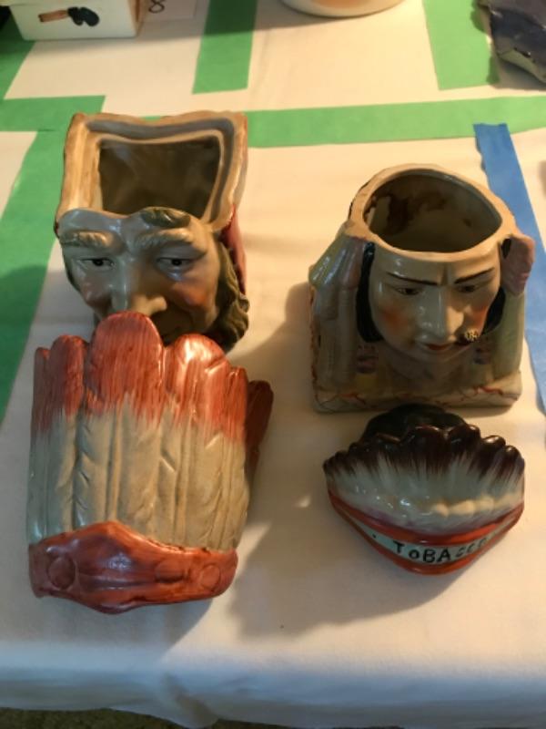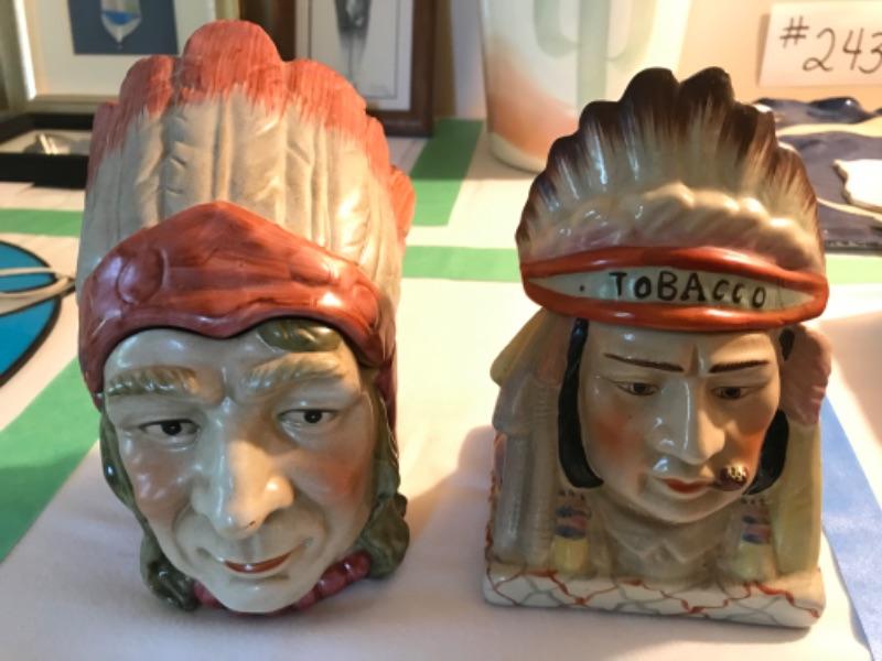 Pair of porcelain Native American dishes with lids. No stamps or markings on either