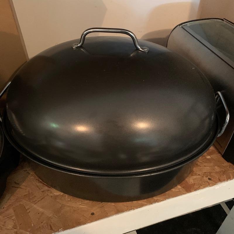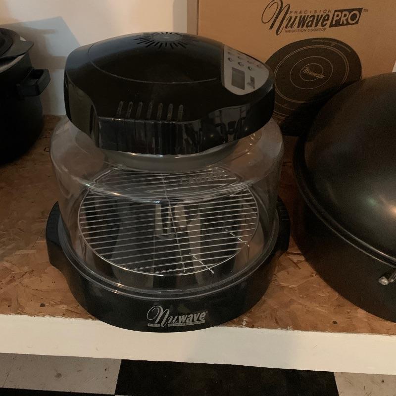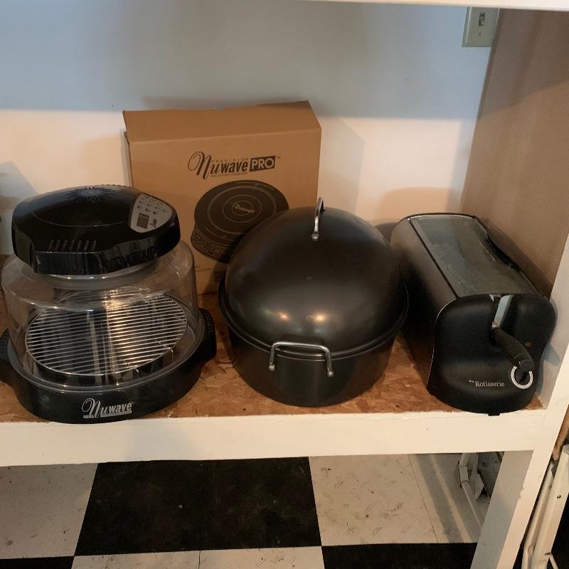 Lot contains four options for cooking. First there is a large roasting pan for your turkey this year. It measures 22” x15” x12”, so you better have a big oven! Then we have a countertop rotisserie by Living Well Montel. And finally two NuWave products, one is an induction cooktop and the other is an infrared oven. Keep yourself amused with try new and old forms of cooking. All items worked when plugged in and appear to be rather new. Local pick up only.