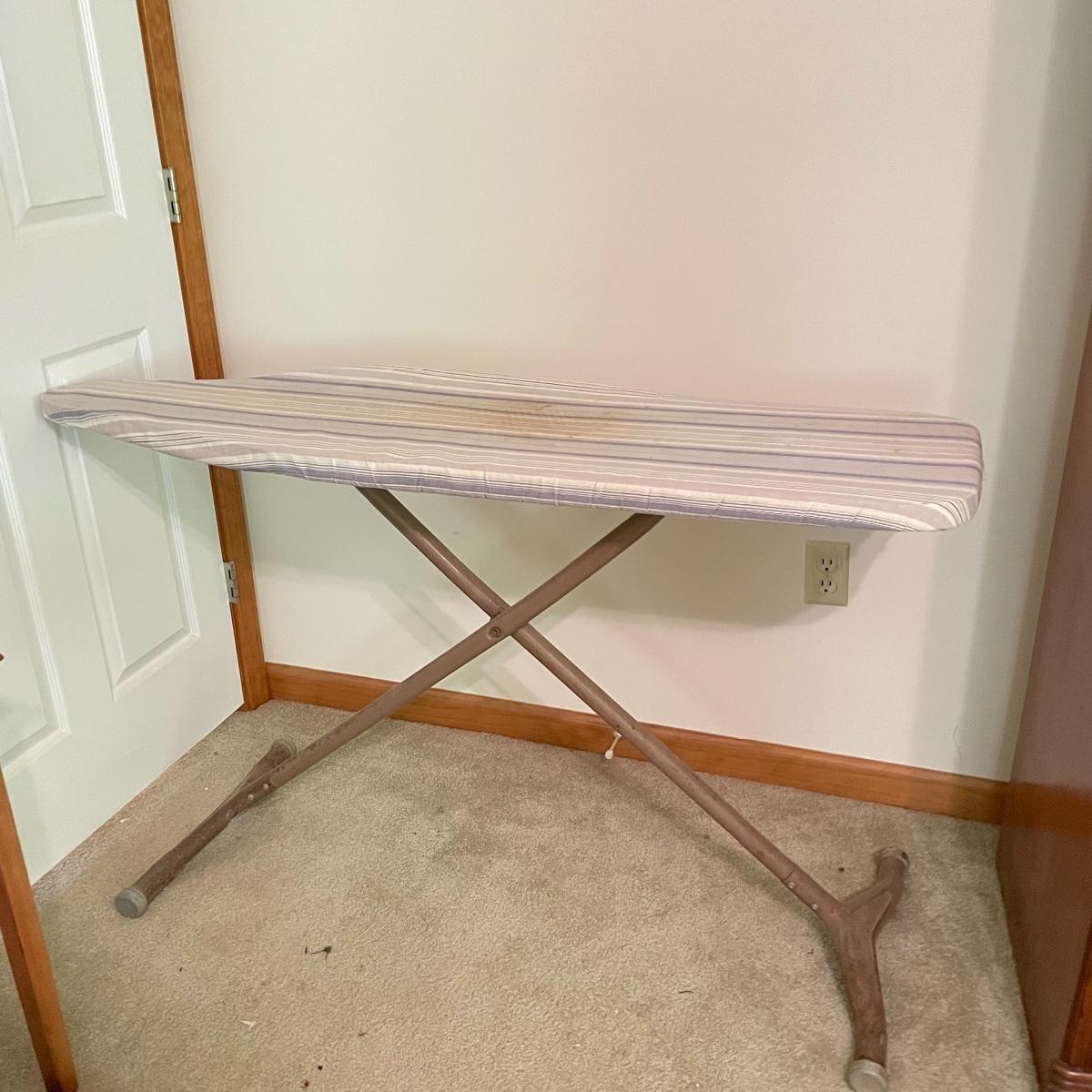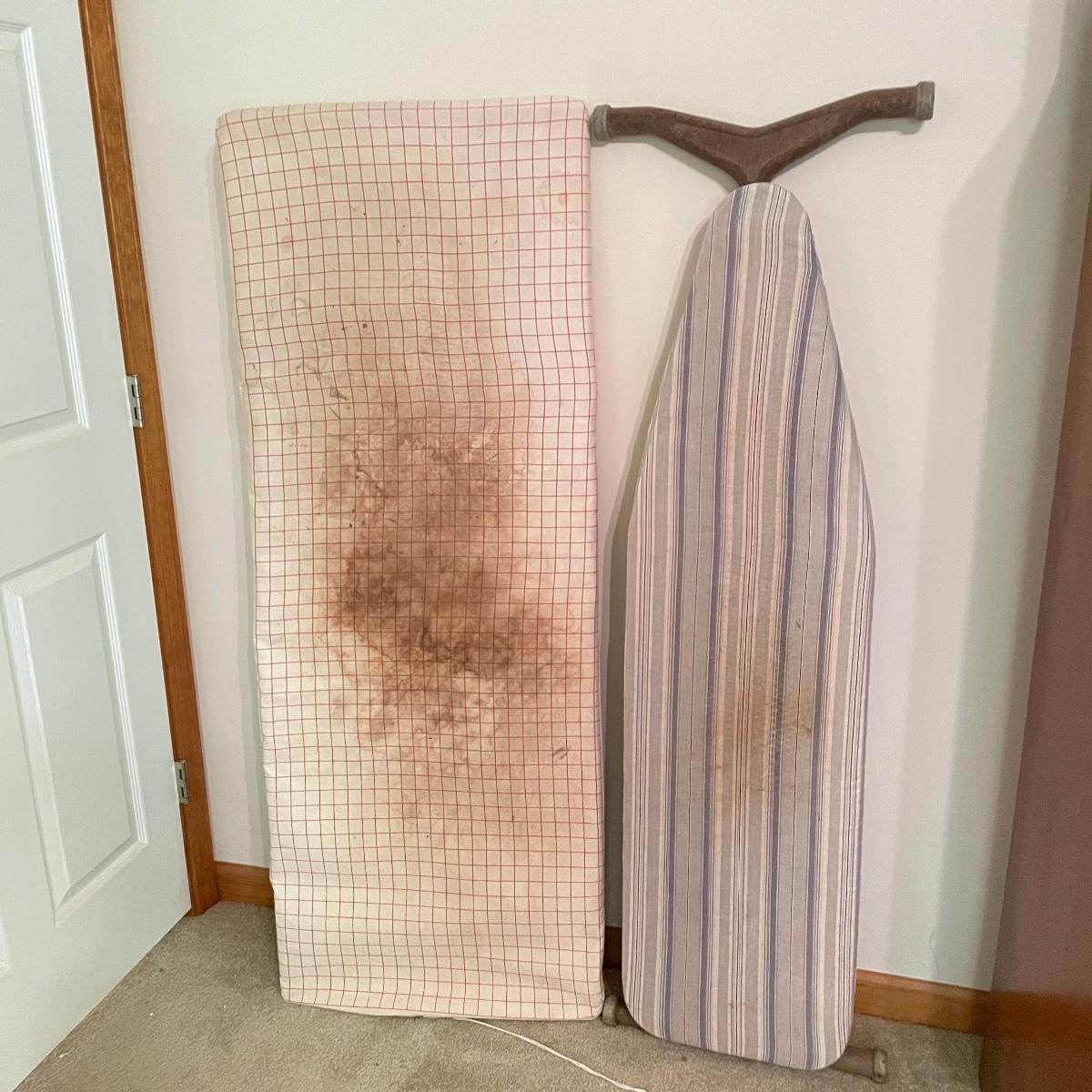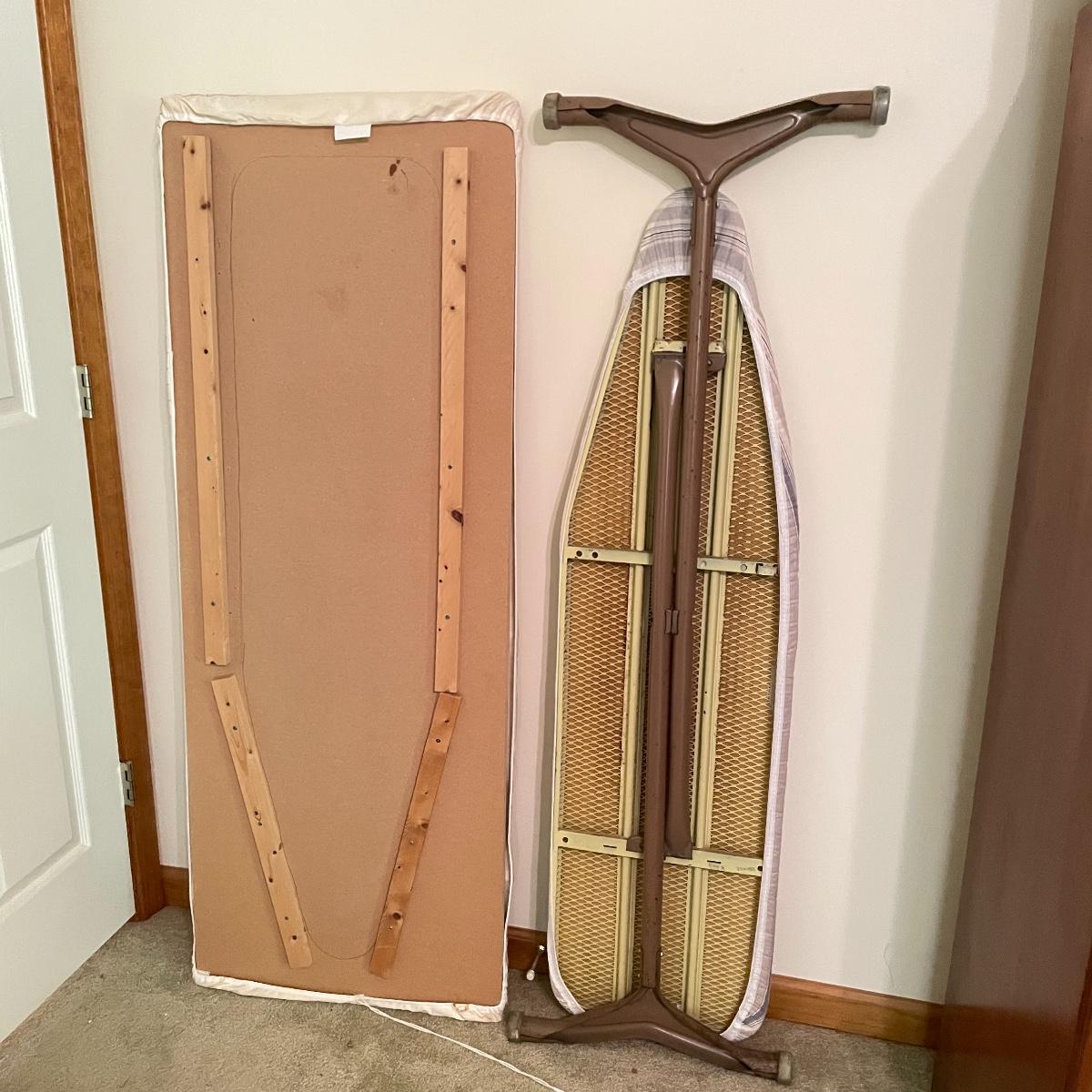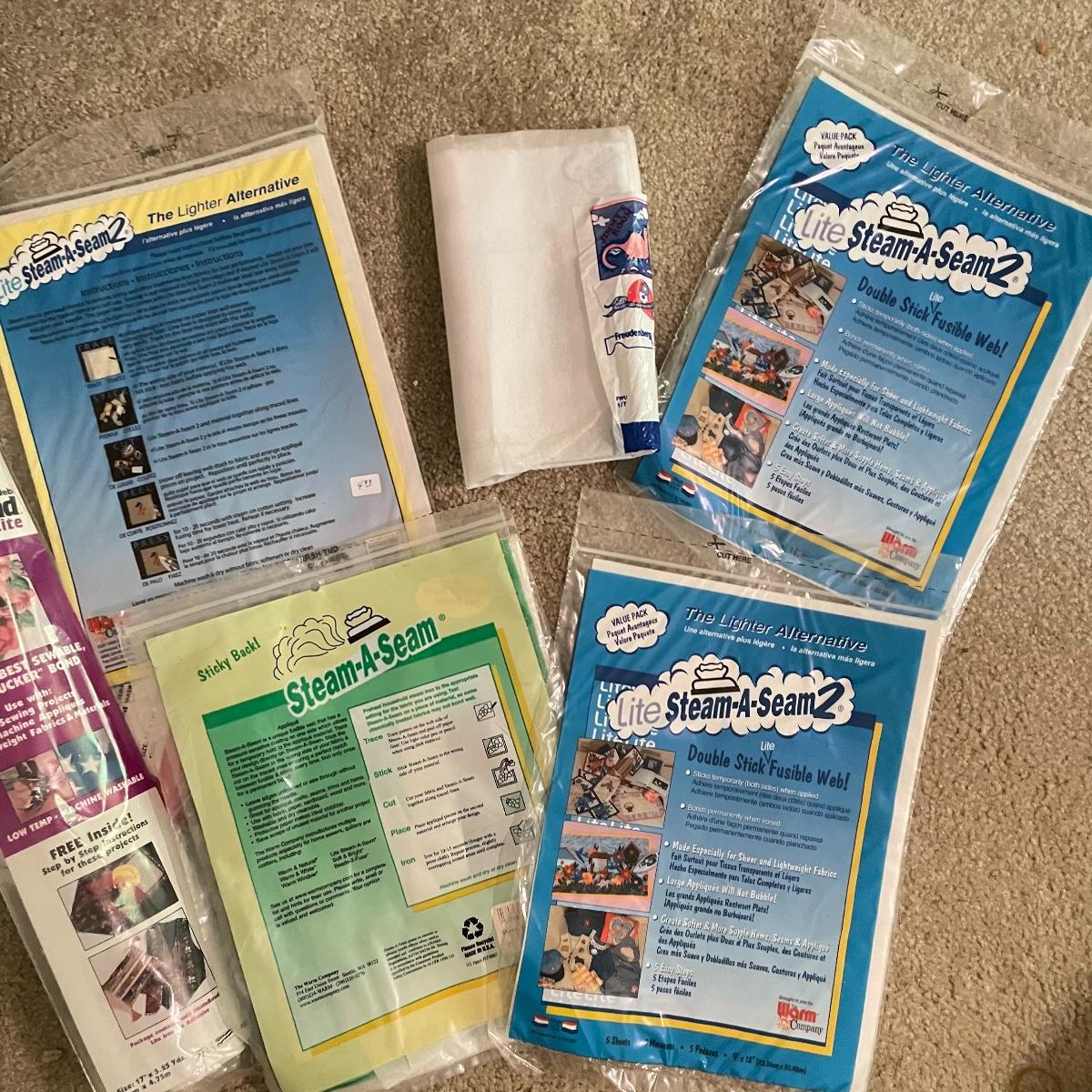 Sturdy vintage metal ironing board with a custom fit pressed wood sewing board. Both covers have been well loved and need some cleaning or replacing. Lot also contains Heat Press Batting Together, HeatnBond UltraHold, Steam-a-Seam, and more. See images. Board measures 59” x 22.5”. Ironing board has some blemishes on its legs, but it doesn’t change its sturdy feel. Local pick up only.