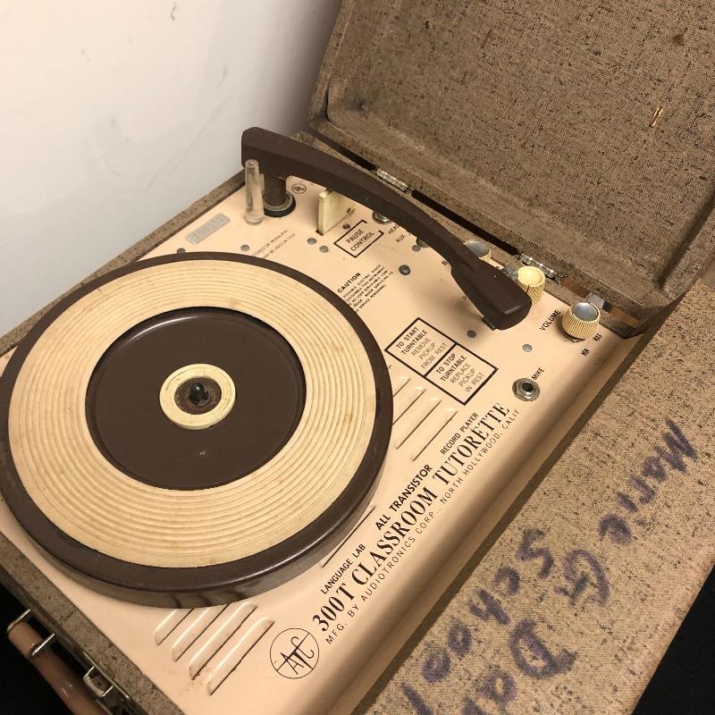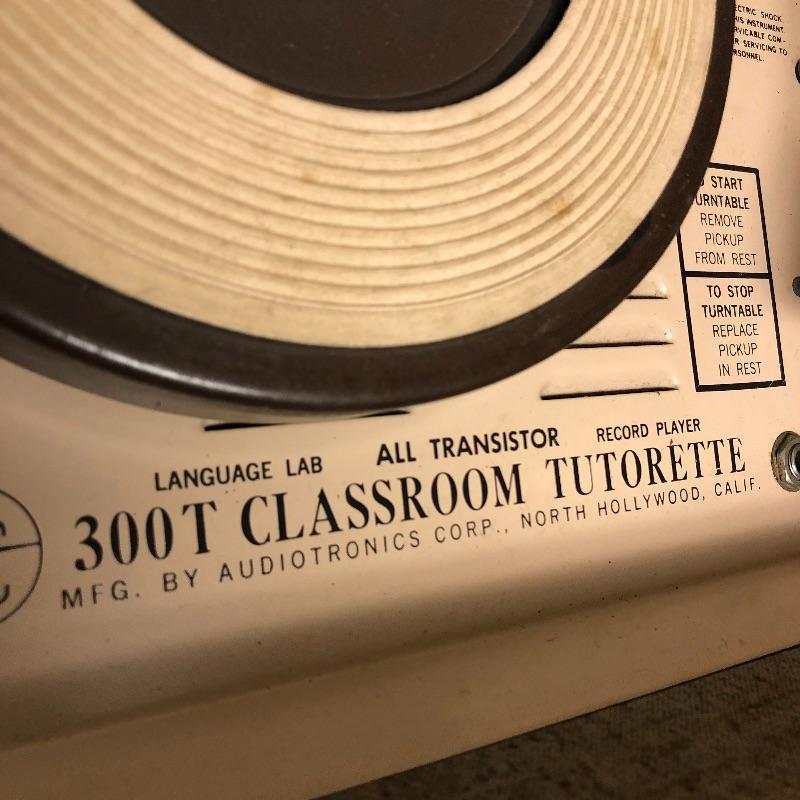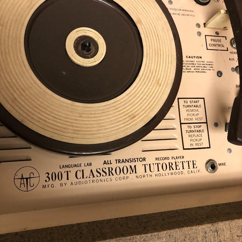 This lot includes one 300T Classroom Tutorette record player, 198338. It did not power on when plugged in.