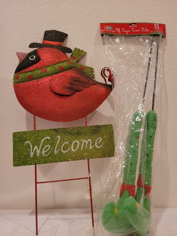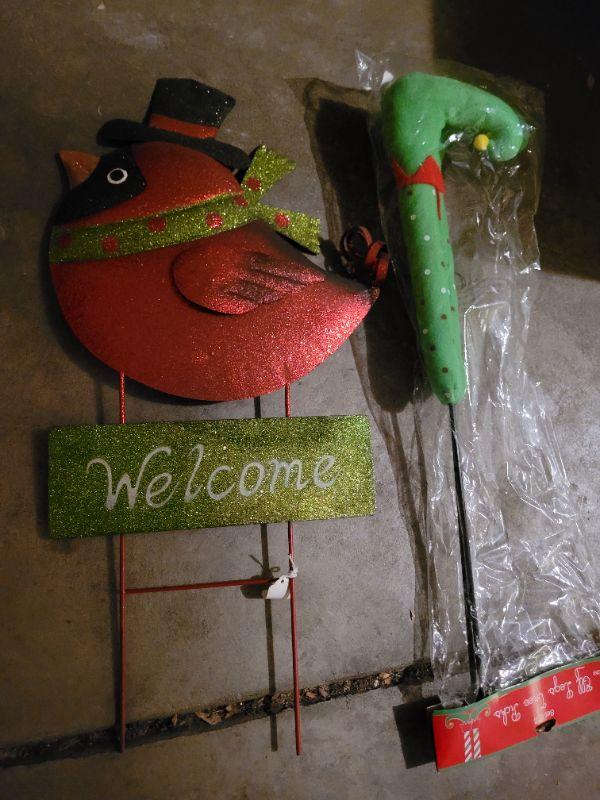 Lot 331: Welcome Christmas Sign + Elf Shoe Stakes