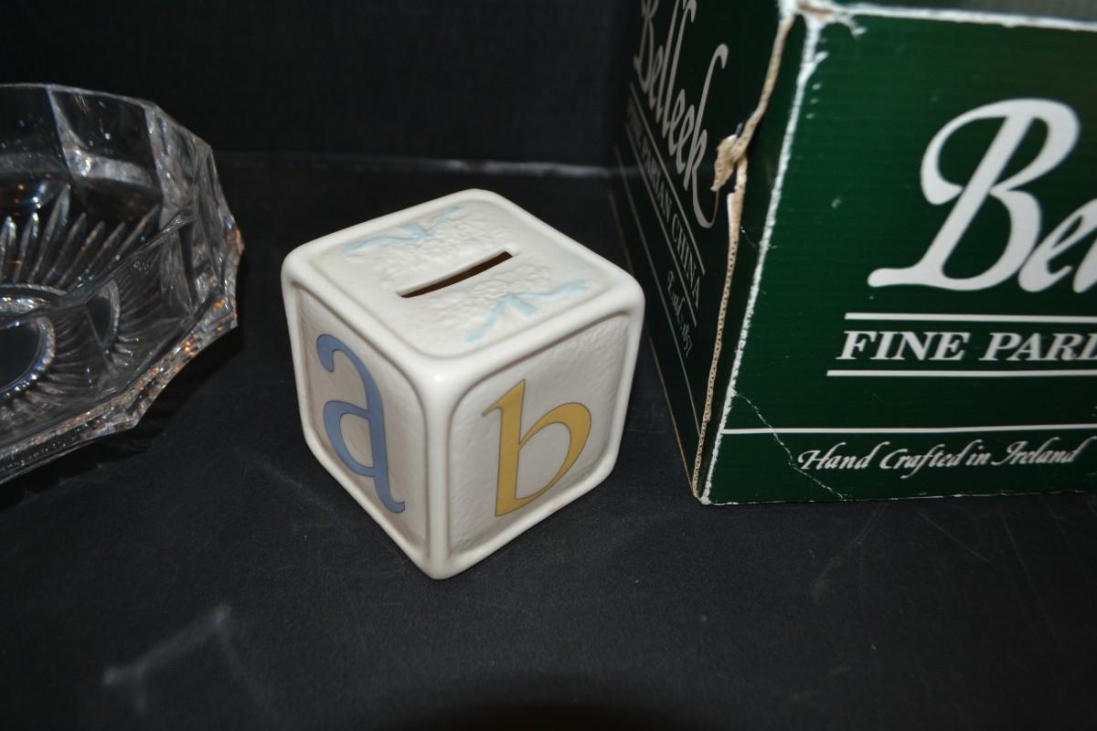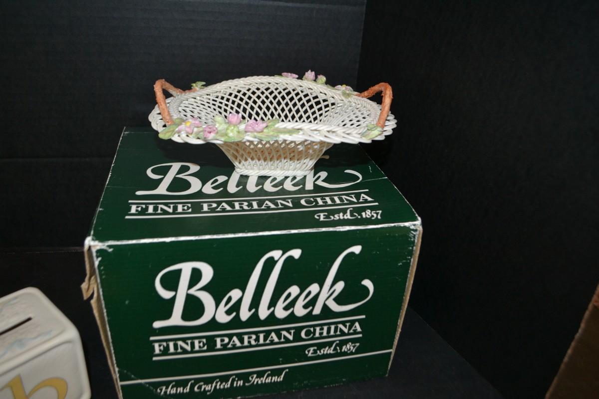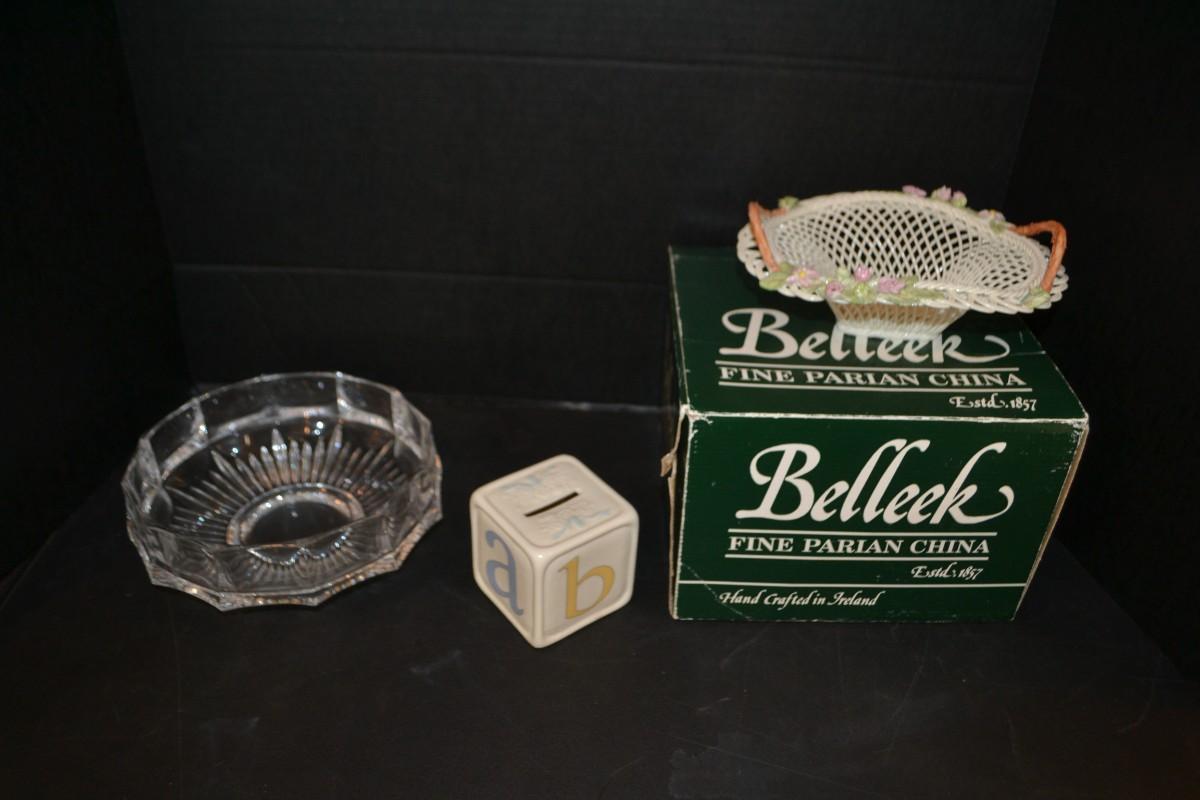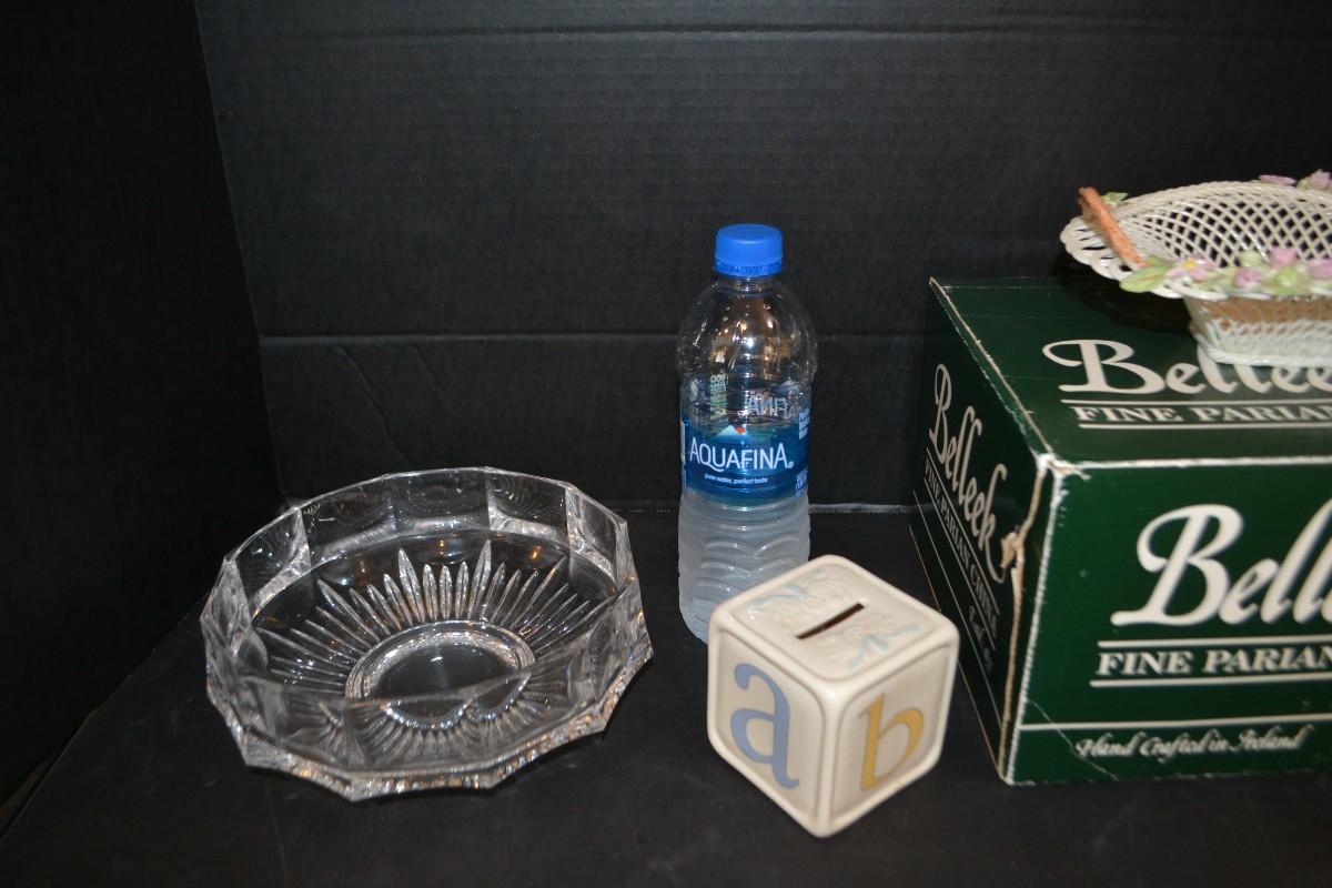 LOT 331 BELLEEK FINE CHINA ITEMS AND GLASS BOWL