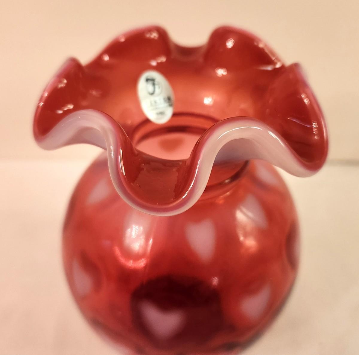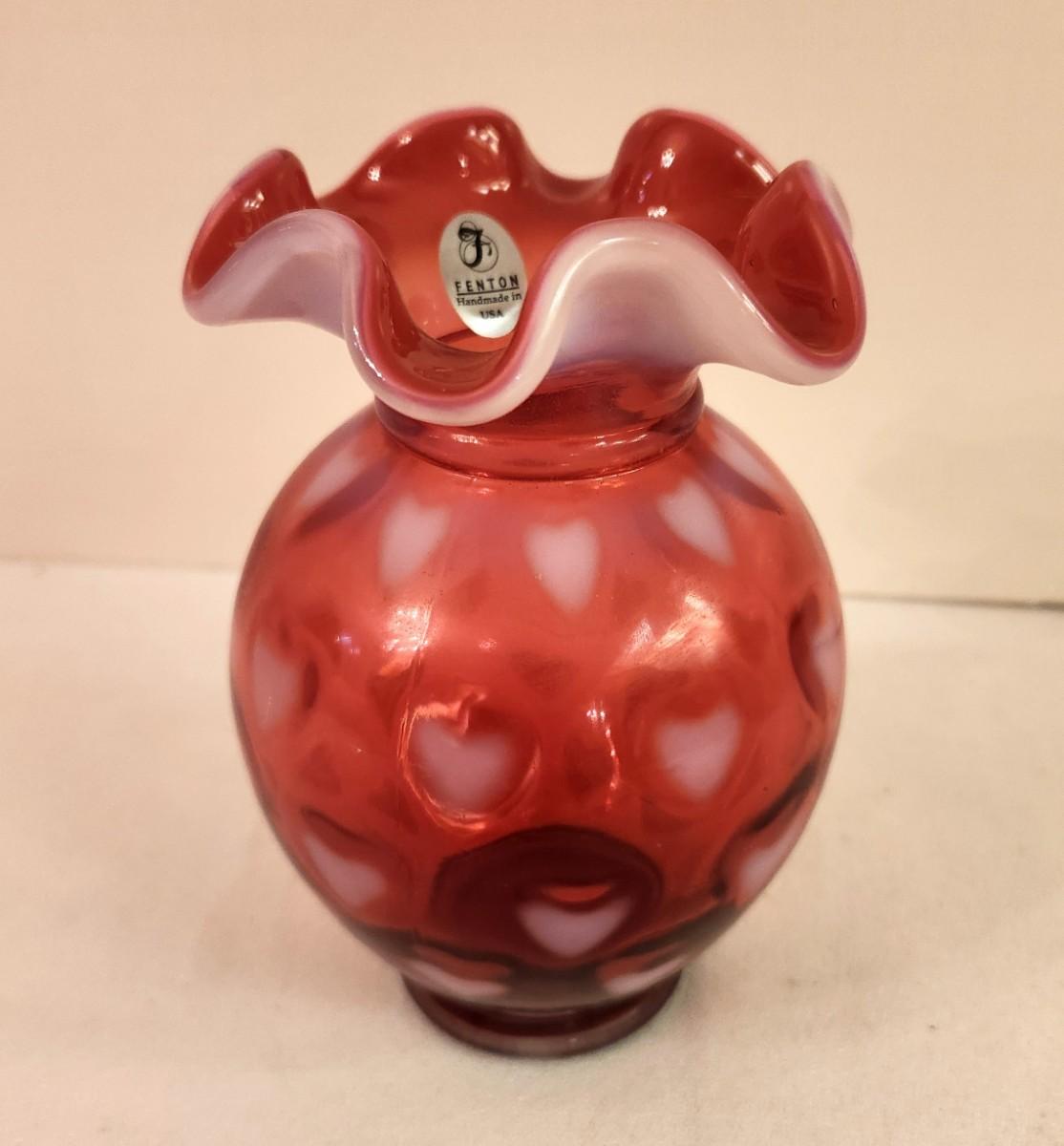 Lot #331 Fenton Art Glass Cranberry Heart Vase