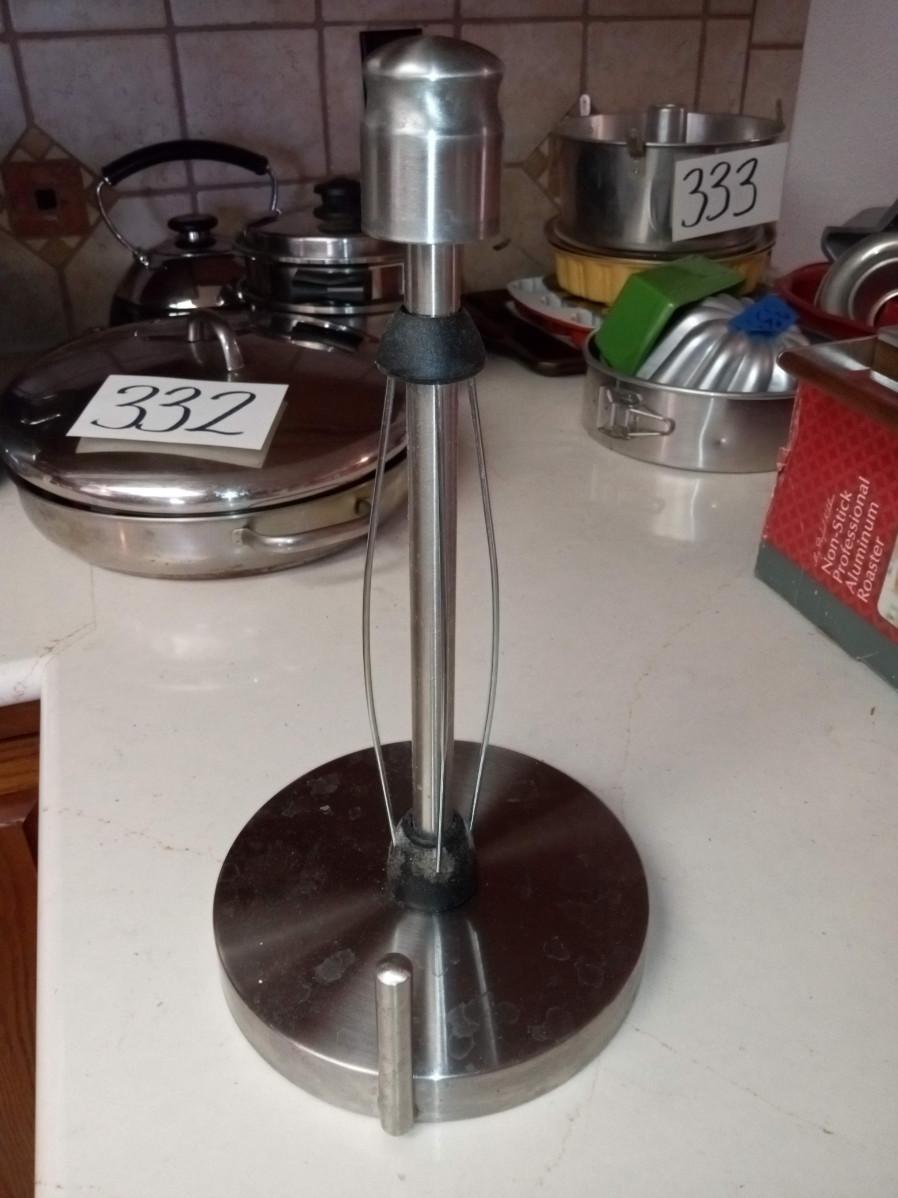 LOT 331 LARGE SKILLET AND POT - PAPER TOWEL HOLDER