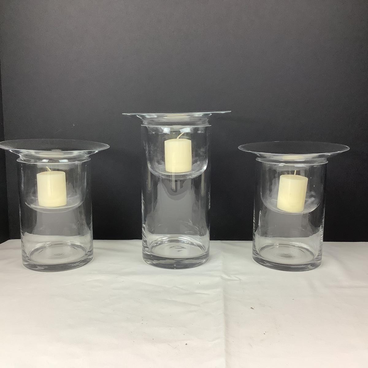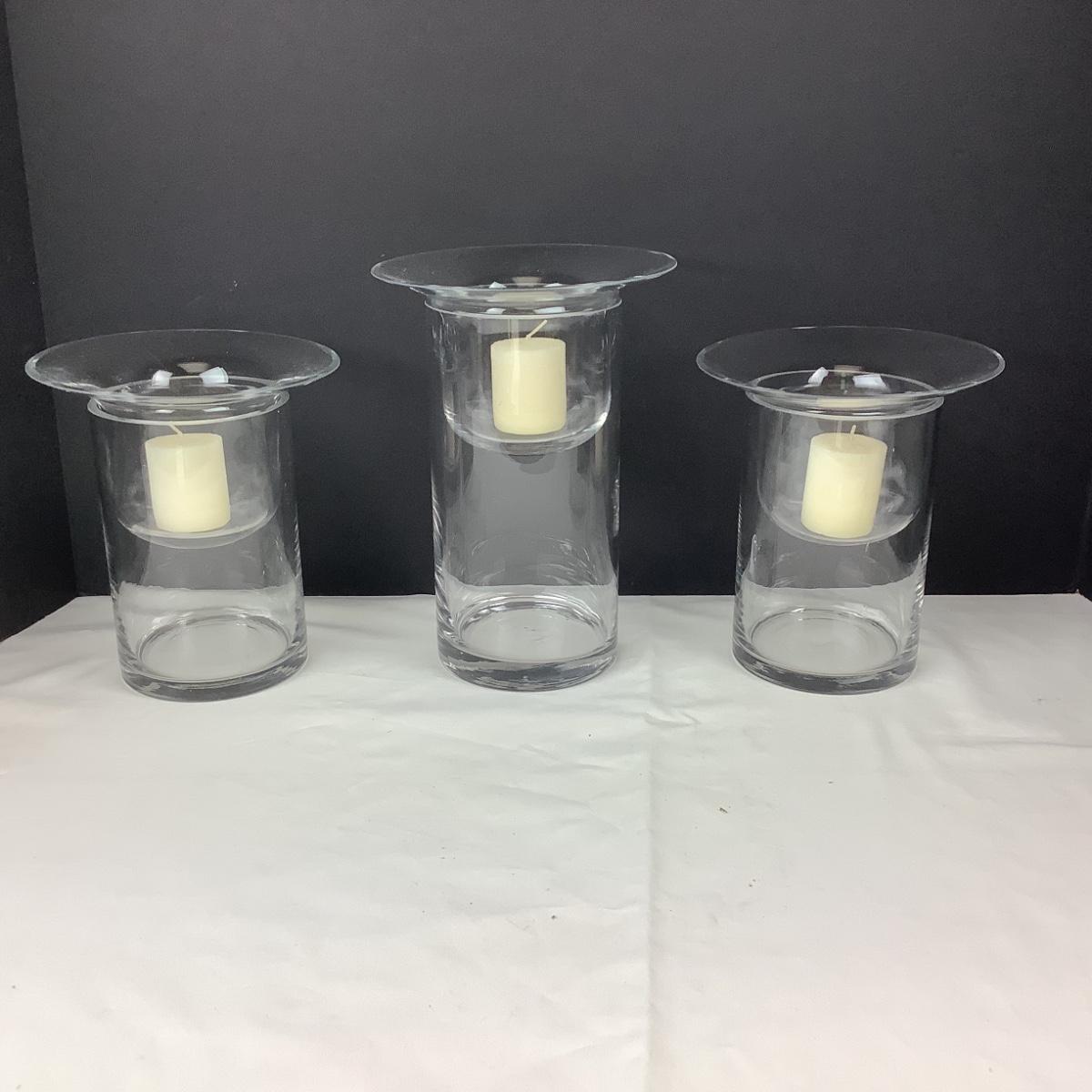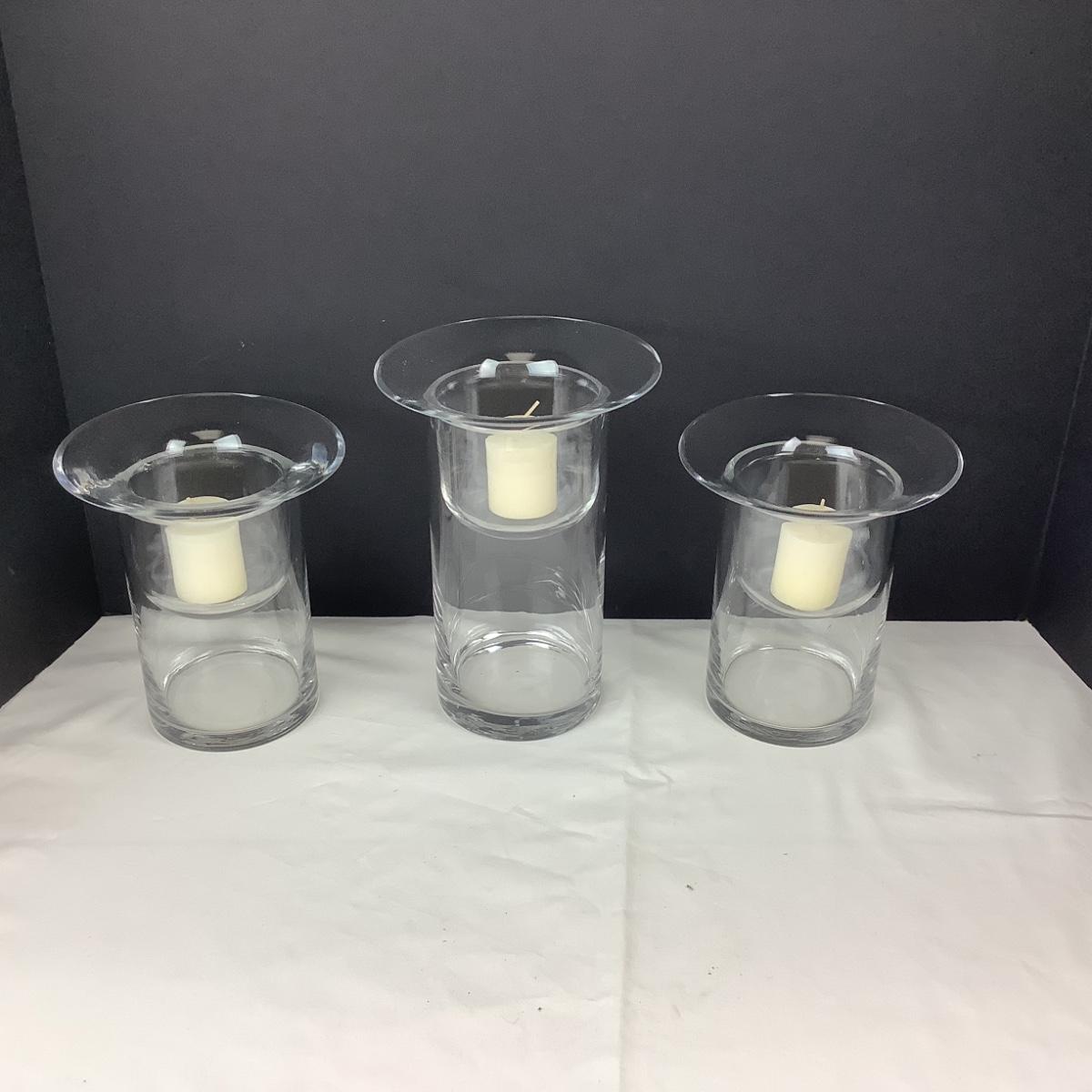 Lot 331  Set of Three Clear Glass Votive Cylinders