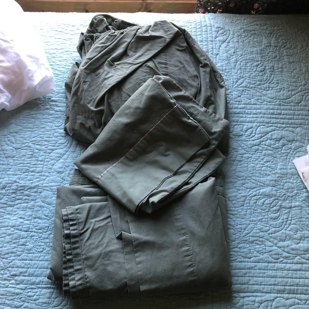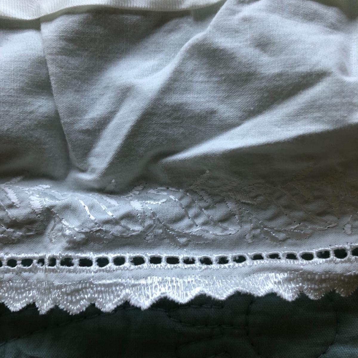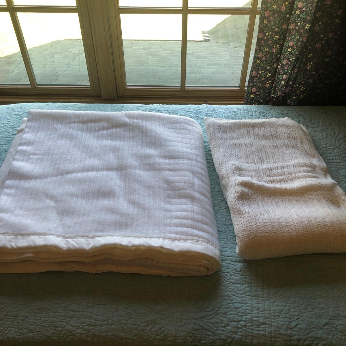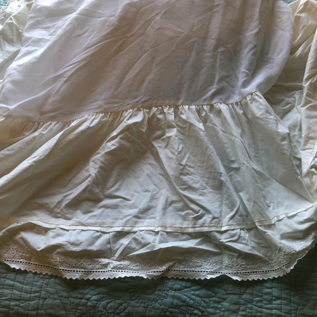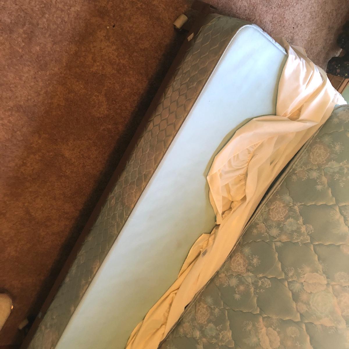 This lot has a nice assortment of twin bedding that include three sets that each have a flat and fitted sheet and pillowcase. Also included is a pretty pale blue 100% cotton bedspread, two bed skirts and two blankets (note the stains shown in images of the one). The mattress, box spring and frame are available for the winning bidder.