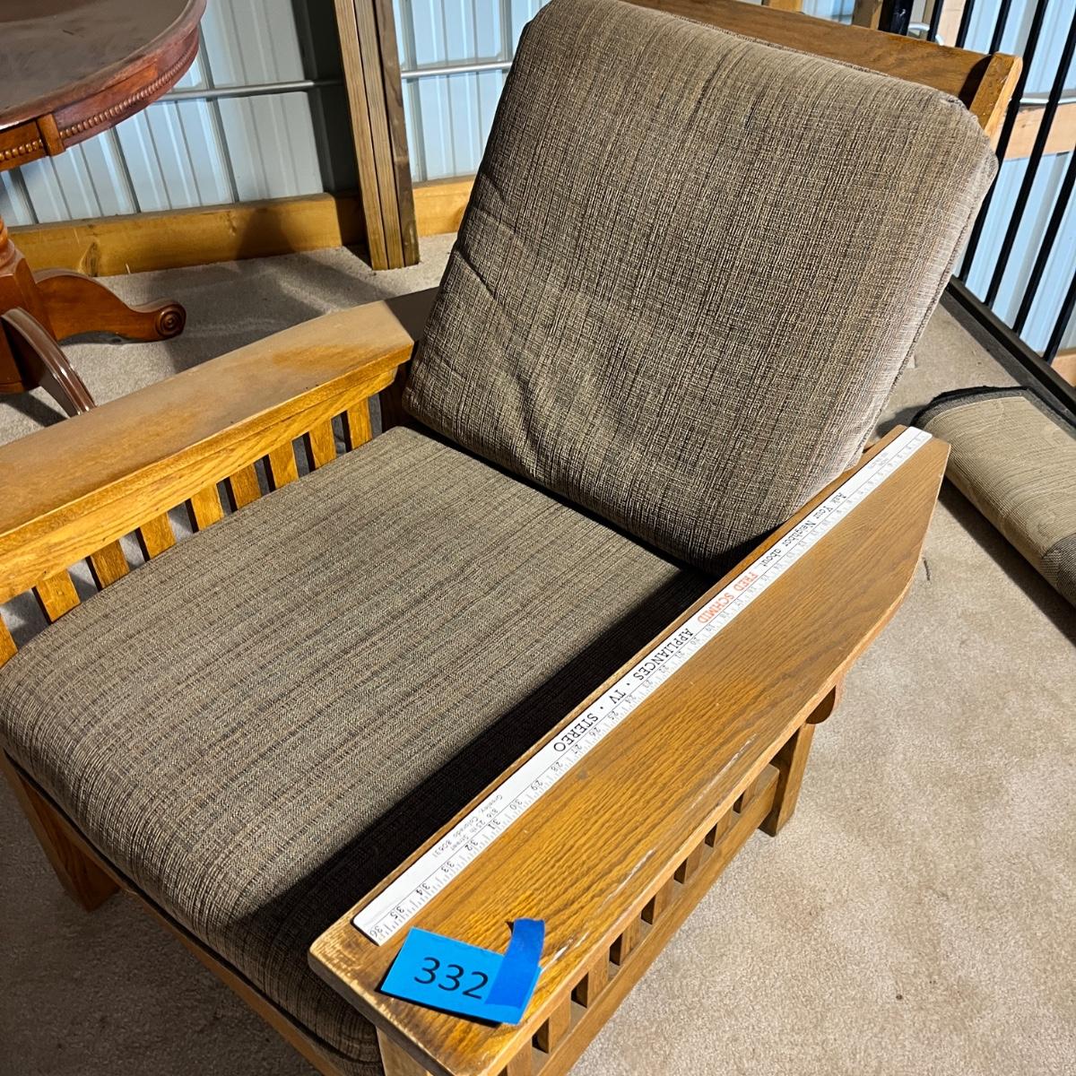 Lot 332 Mission Oak adjustable back chair with taupe cushion