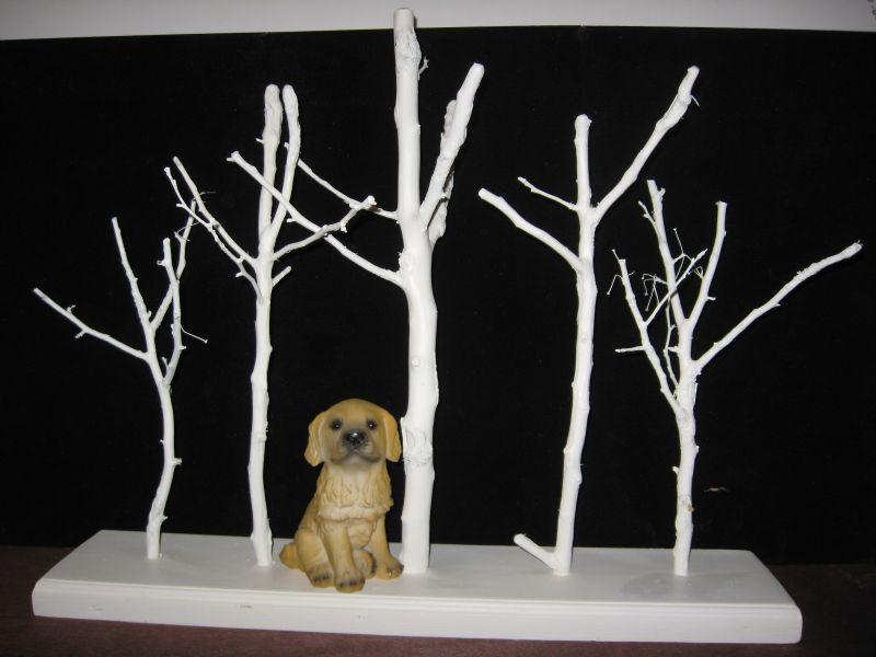 Handmade Wood Art with Cute Golden Retriever 20”H 24.5”W Branches extend to 10” Deep