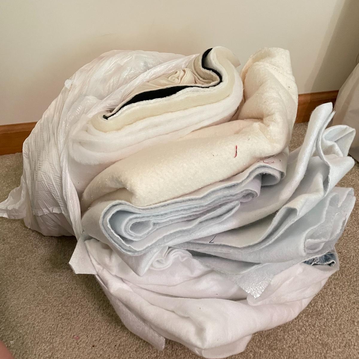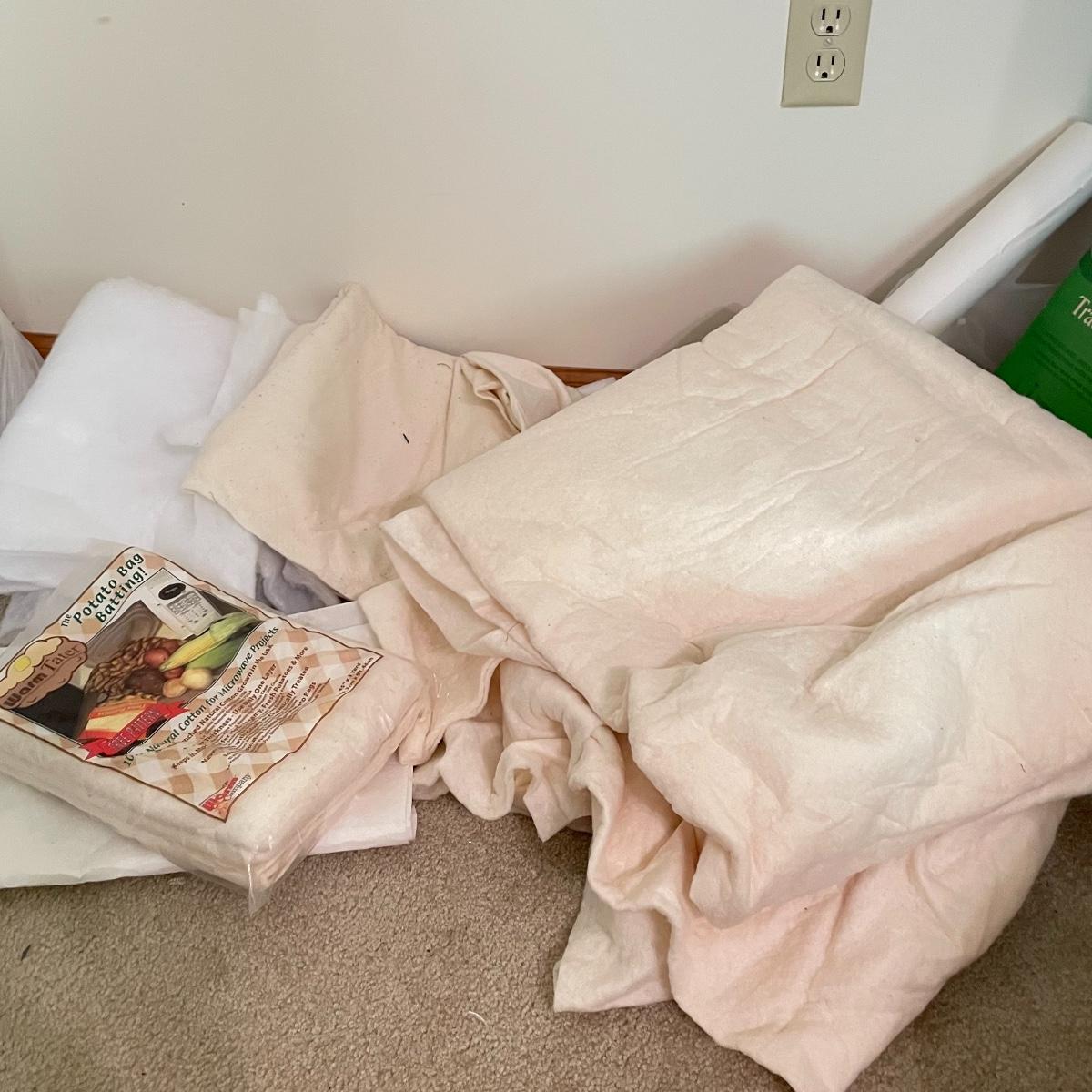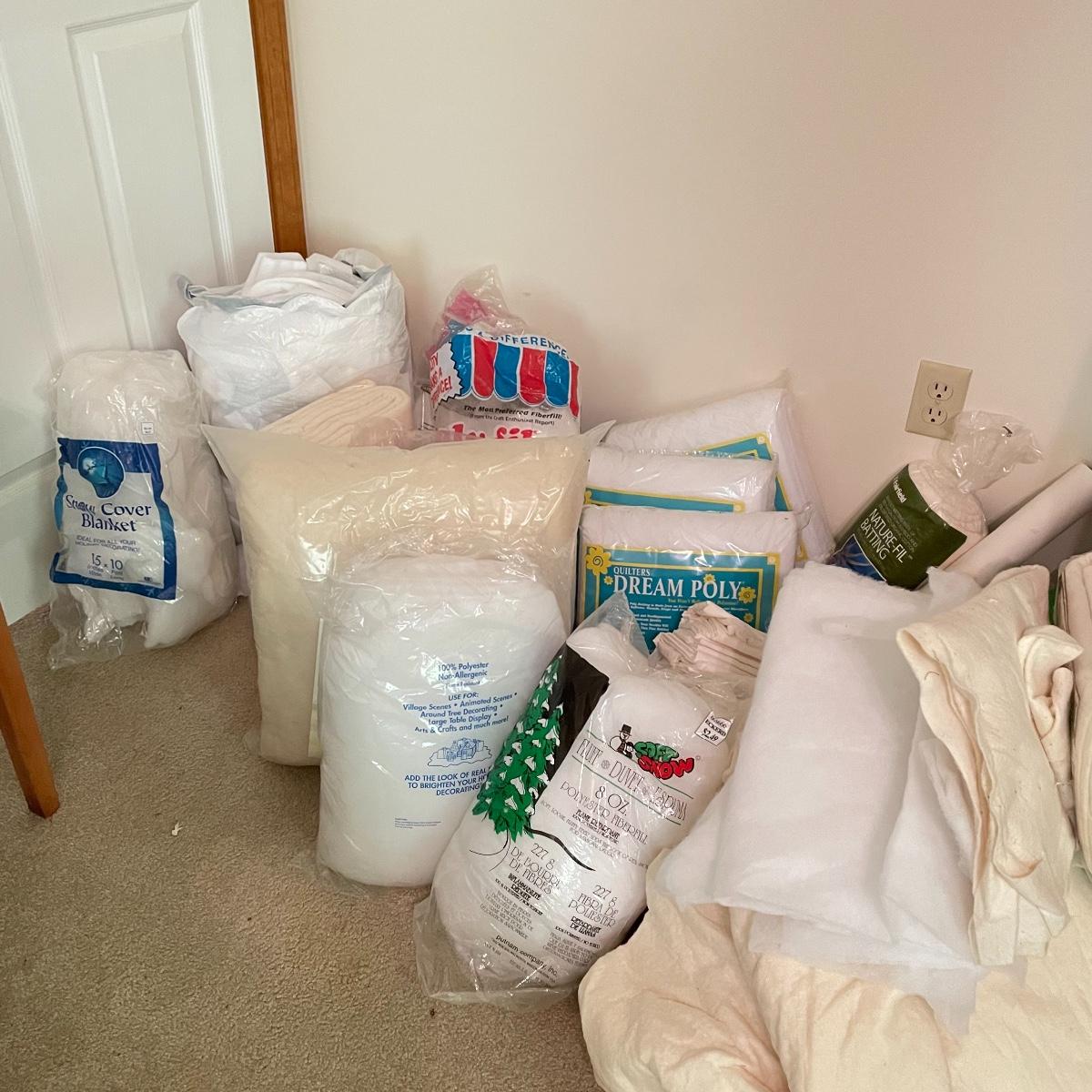Huge lot of batting including polyester, cotton and wool. Many unopened bags and a large amount of usable batting without packaging. Lot also includes two patterned rolls of tracing paper and four more rolls of blank tracing paper. See images. Local pick up only.