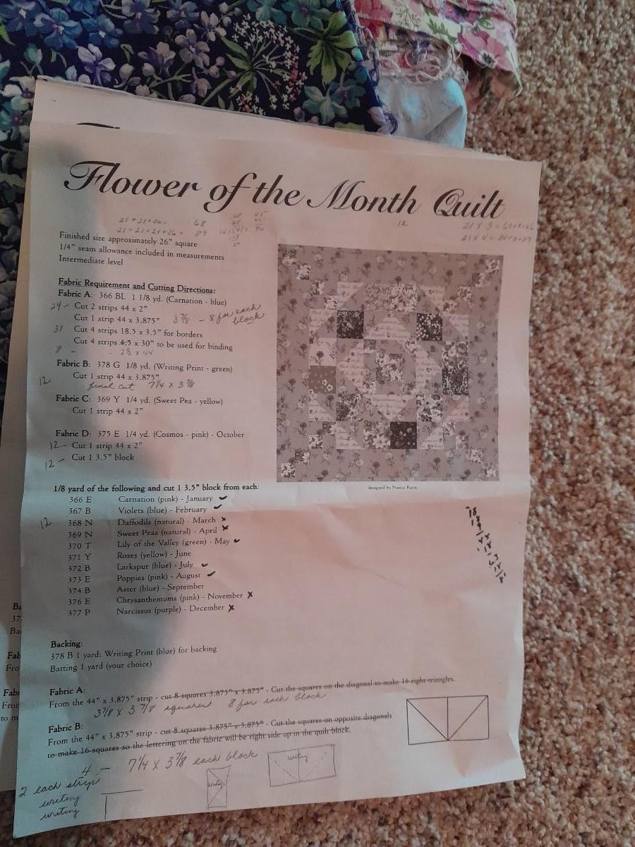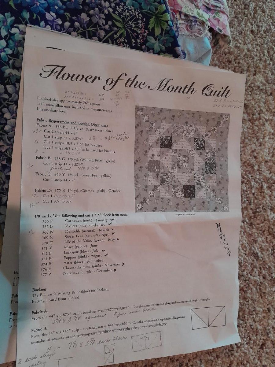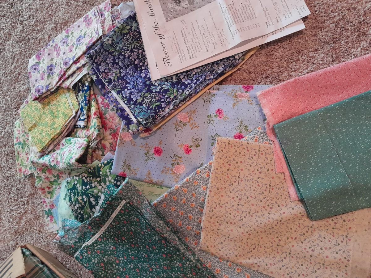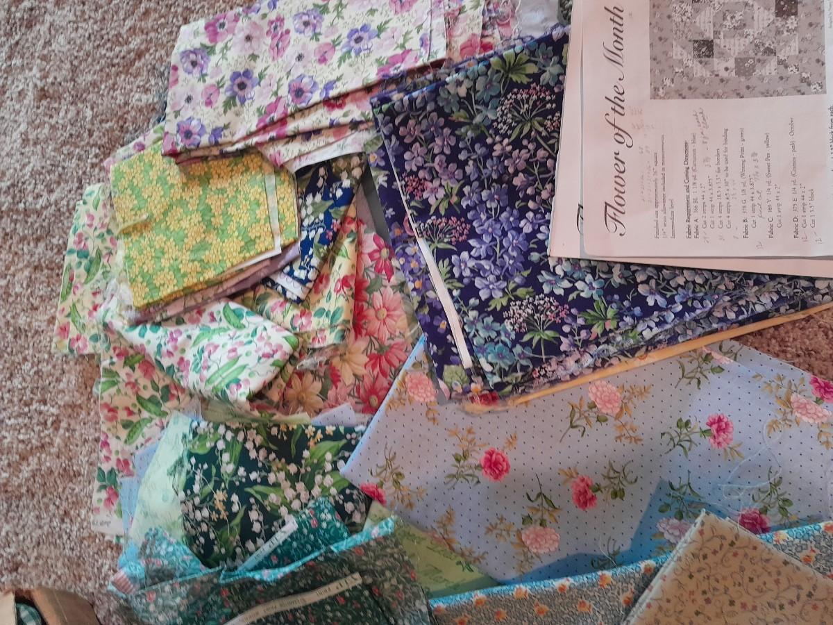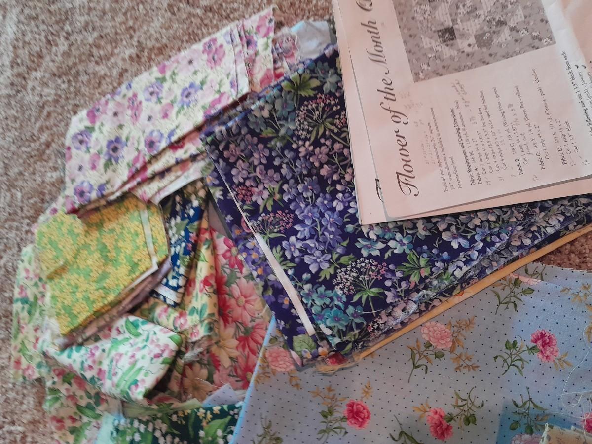 LOT 332 FABRIC PIECES / KIT FOR FLOWER OF THE MONTH QUILT
