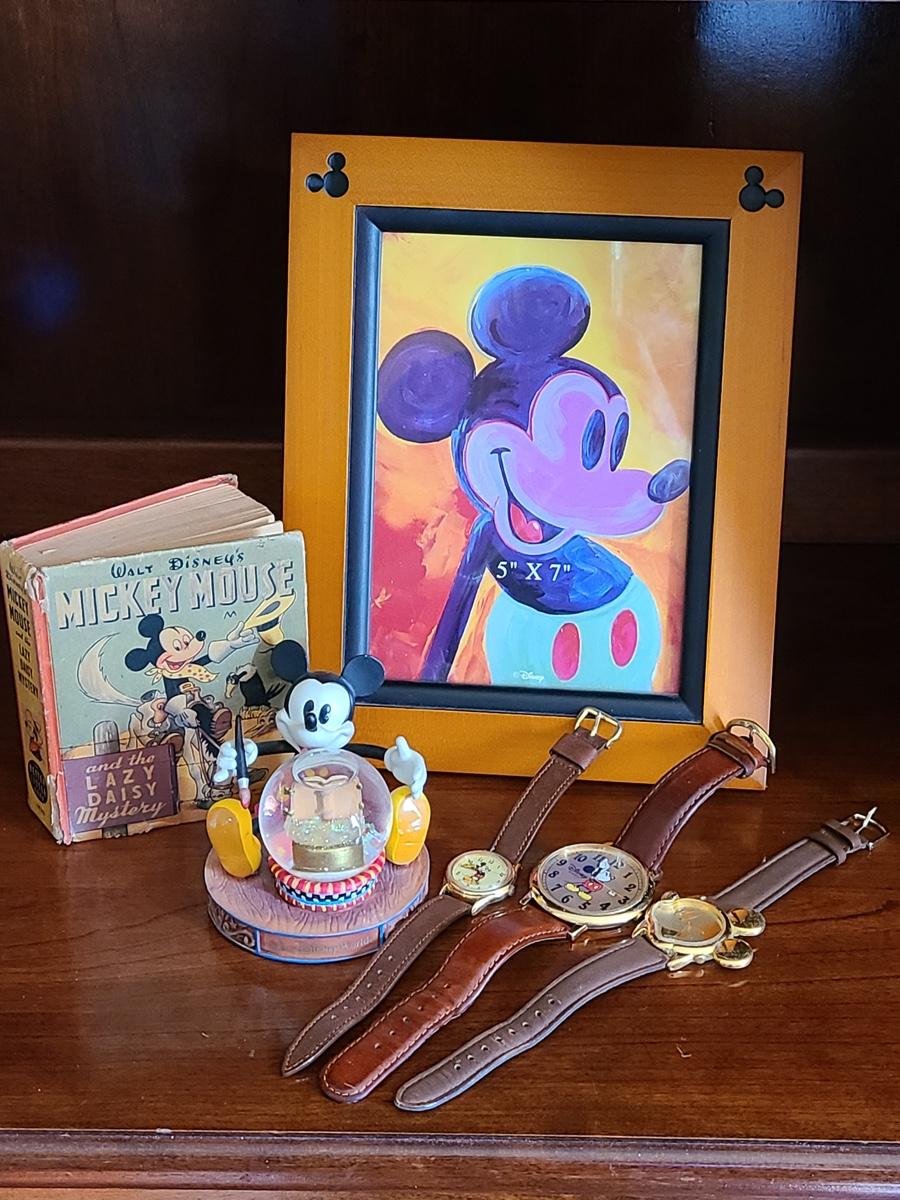 Lot 332: Mickey Mouse Frame, Book, Watches and More