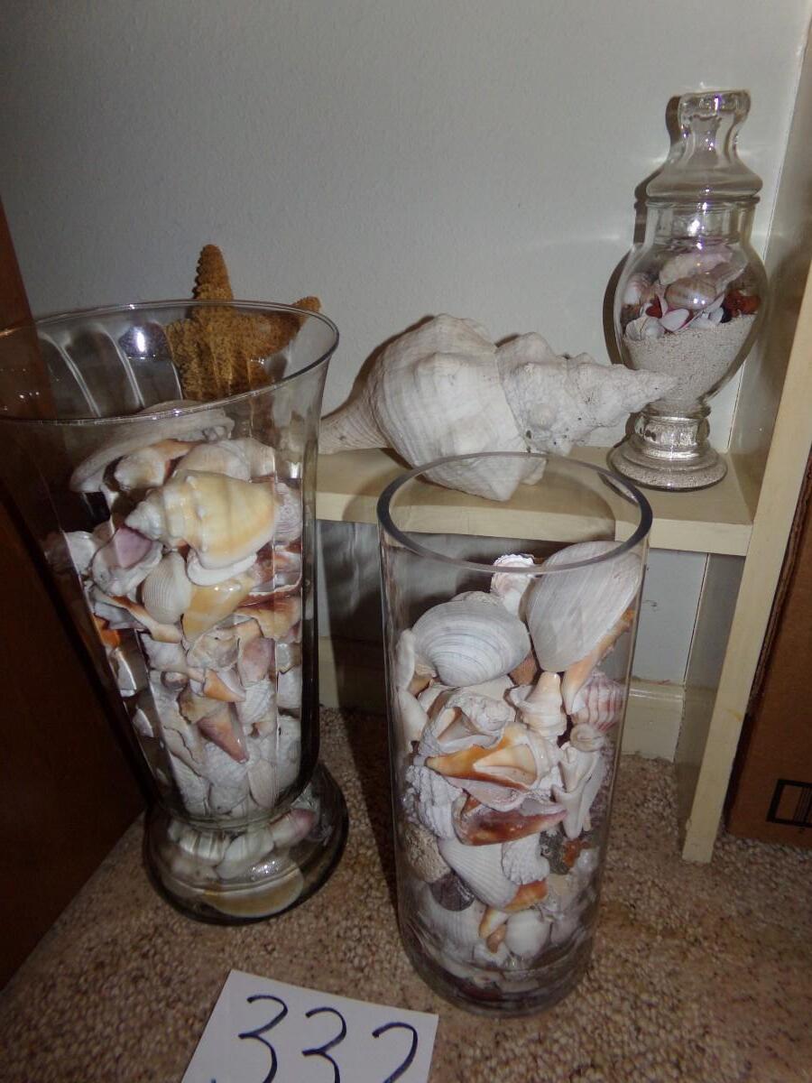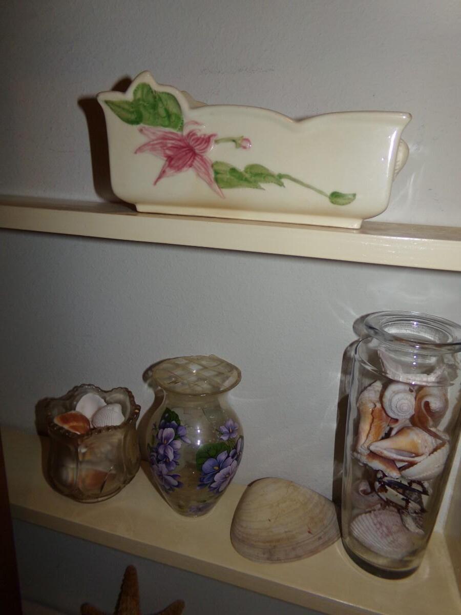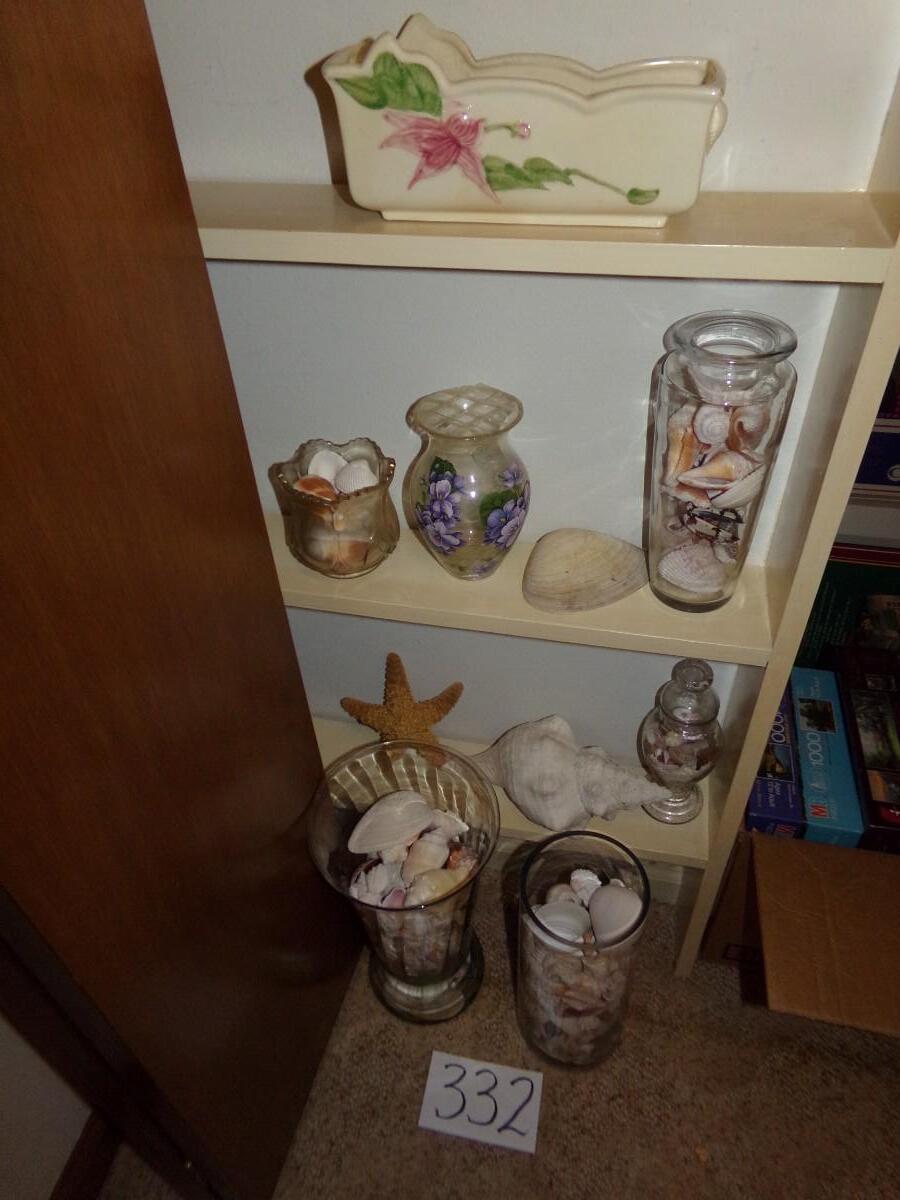 SEA SHELLS FOR EVERY OCCASION. VASES TO GO WITH THEM. ALSO A NICE OBLONG VASE FROM HULL USA