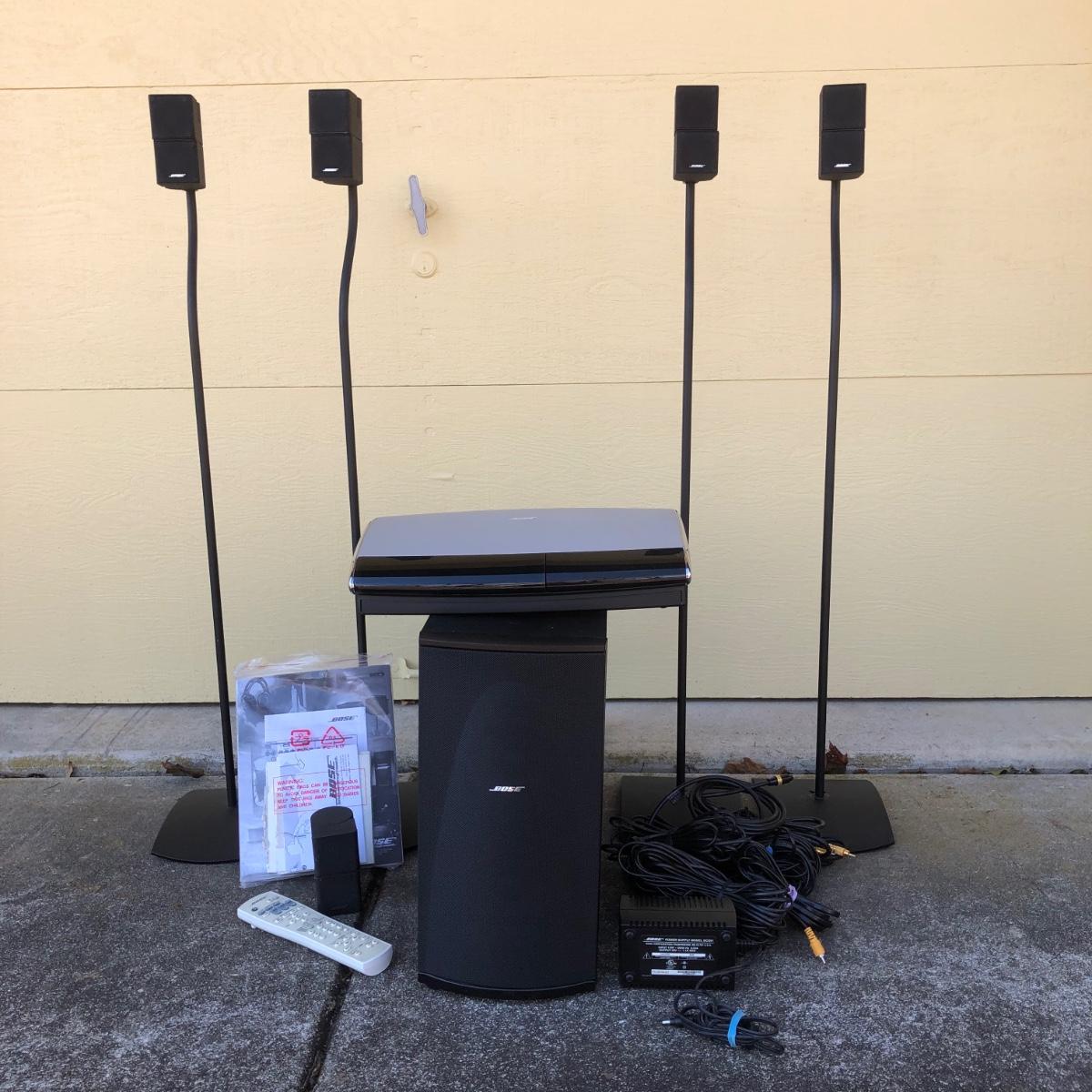 LOT 332G: Bose Surround Sound Speaker System - Media Center Model AV28, Powered Speaker System Model PS48 & Stand Speakers