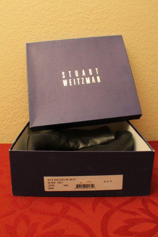 LOT #333: Stuart Weitzmanâ„¢ DISCOVERY Black Calf Leather Boots SIZE 9.0 M w/ Original Box