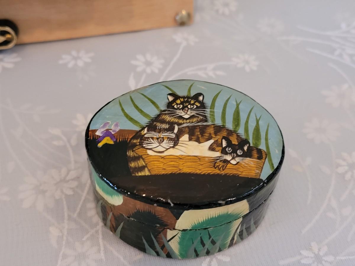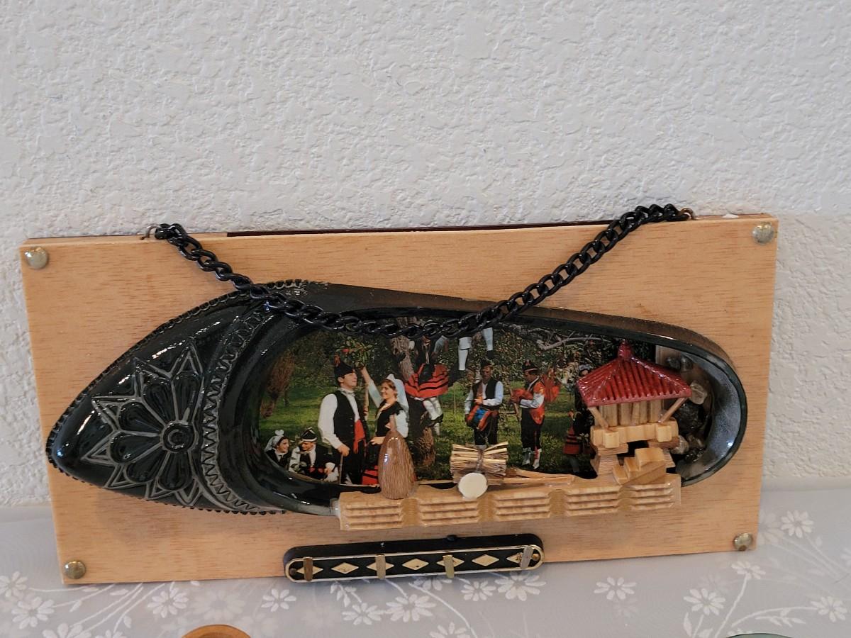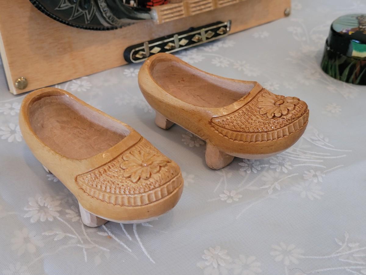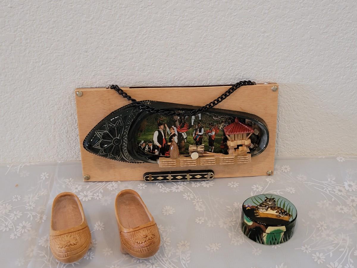 Lot 333: Wood Shoes, Picture Frame and Cat Trinket Box